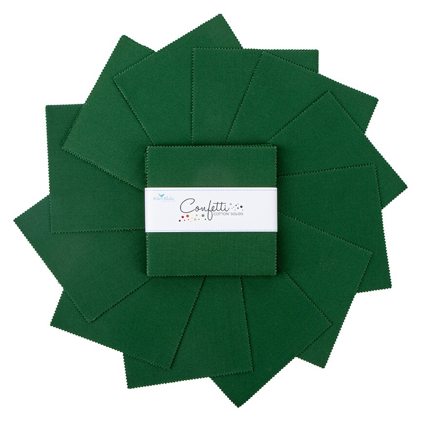 Confetti Cotton 5" Square Pack (Charm Pack / 5" Stacker) in Christmas Green by Riley Blake (5-120-CHRISTMAS-42)