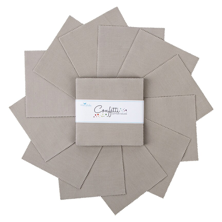 Confetti Cotton 5" Square Pack (Charm Pack / 5" Stacker) in Cobblestone by Riley Blake (5-120-COBBLESTONE-42)