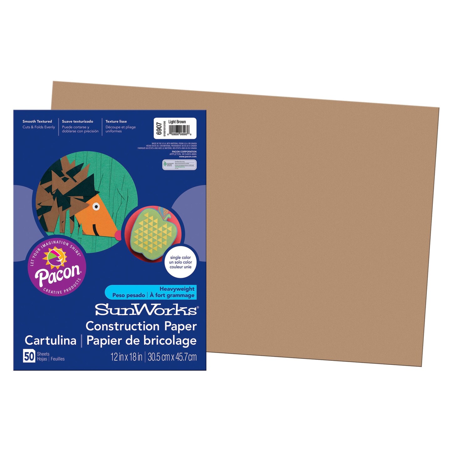 Construction Paper, Light Brown, 12" x 18", 50 Sheets