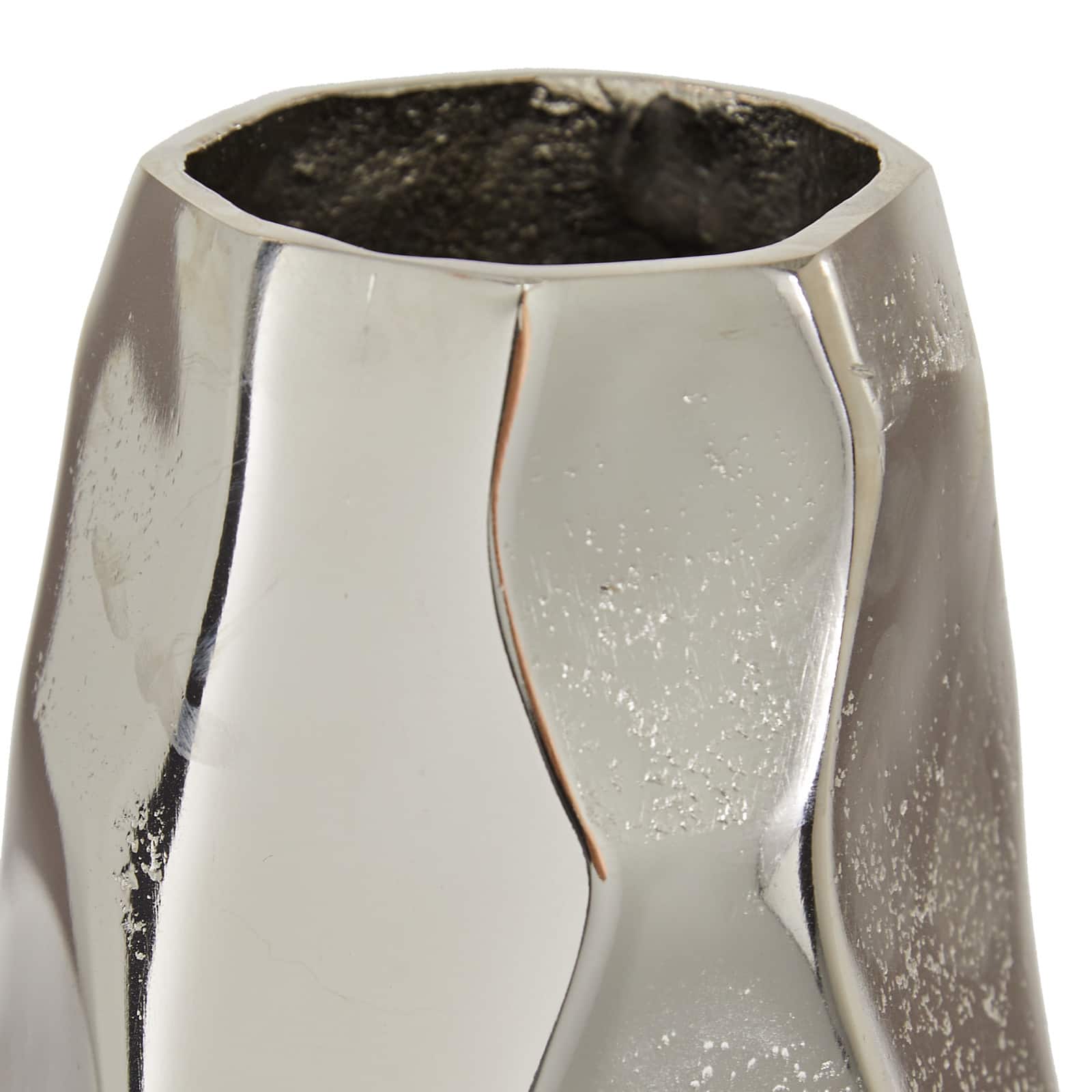 Contemporary Geometric-Style Metallic Silver Aluminum Vase, 12" x 5.7" x 5.4"