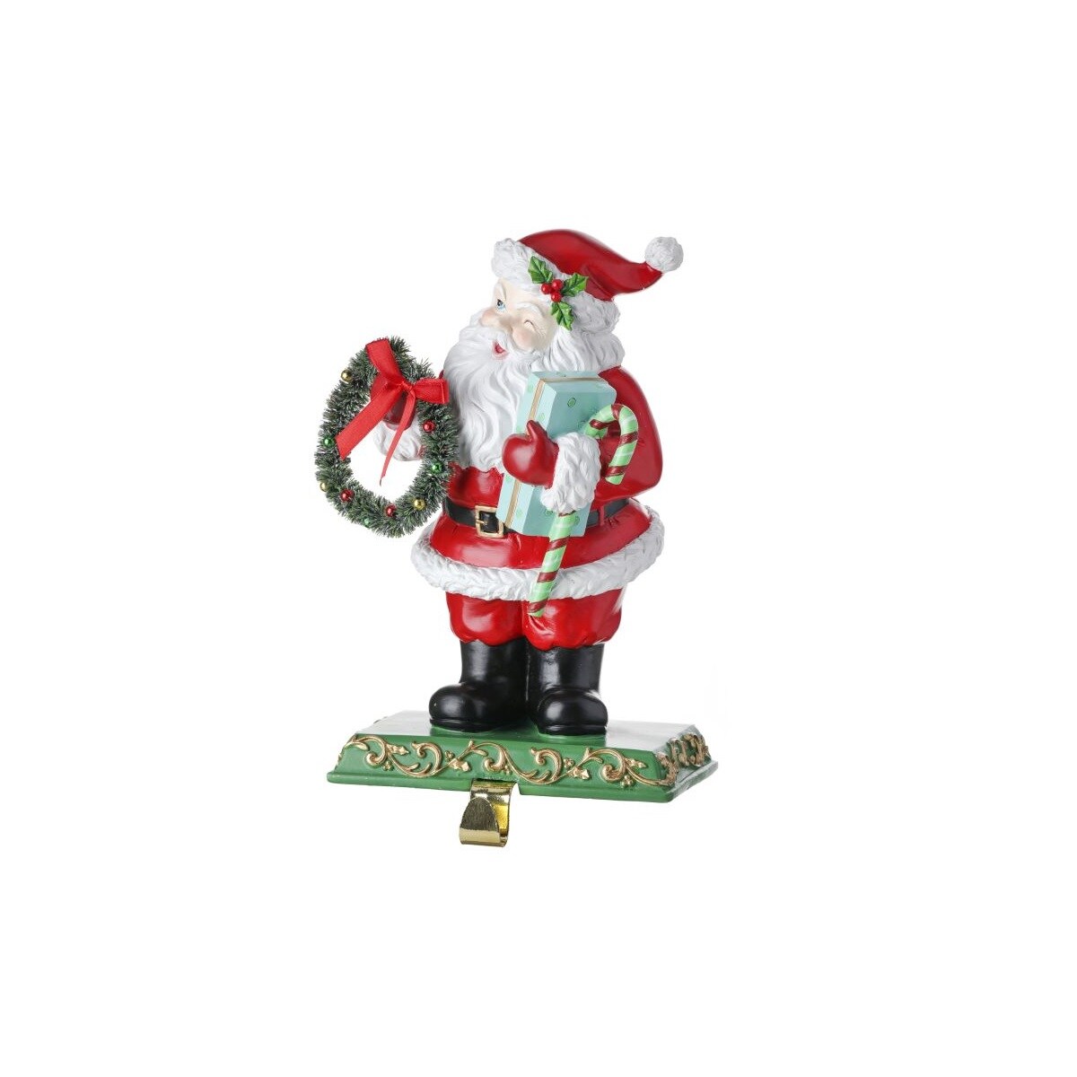 Contemporary Home Living 11.25" Santa Claus Christmas Stocking Holder with Wreath and Gift