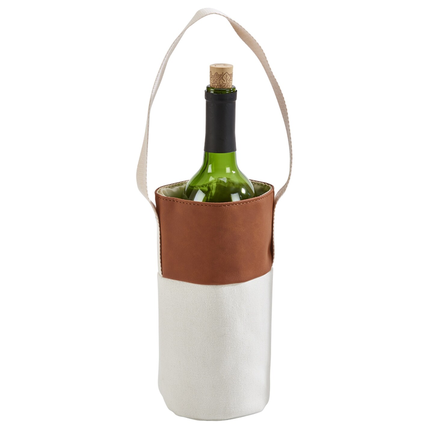 Contemporary Home Living 16" Caramel and White Leatherette Wine Tote