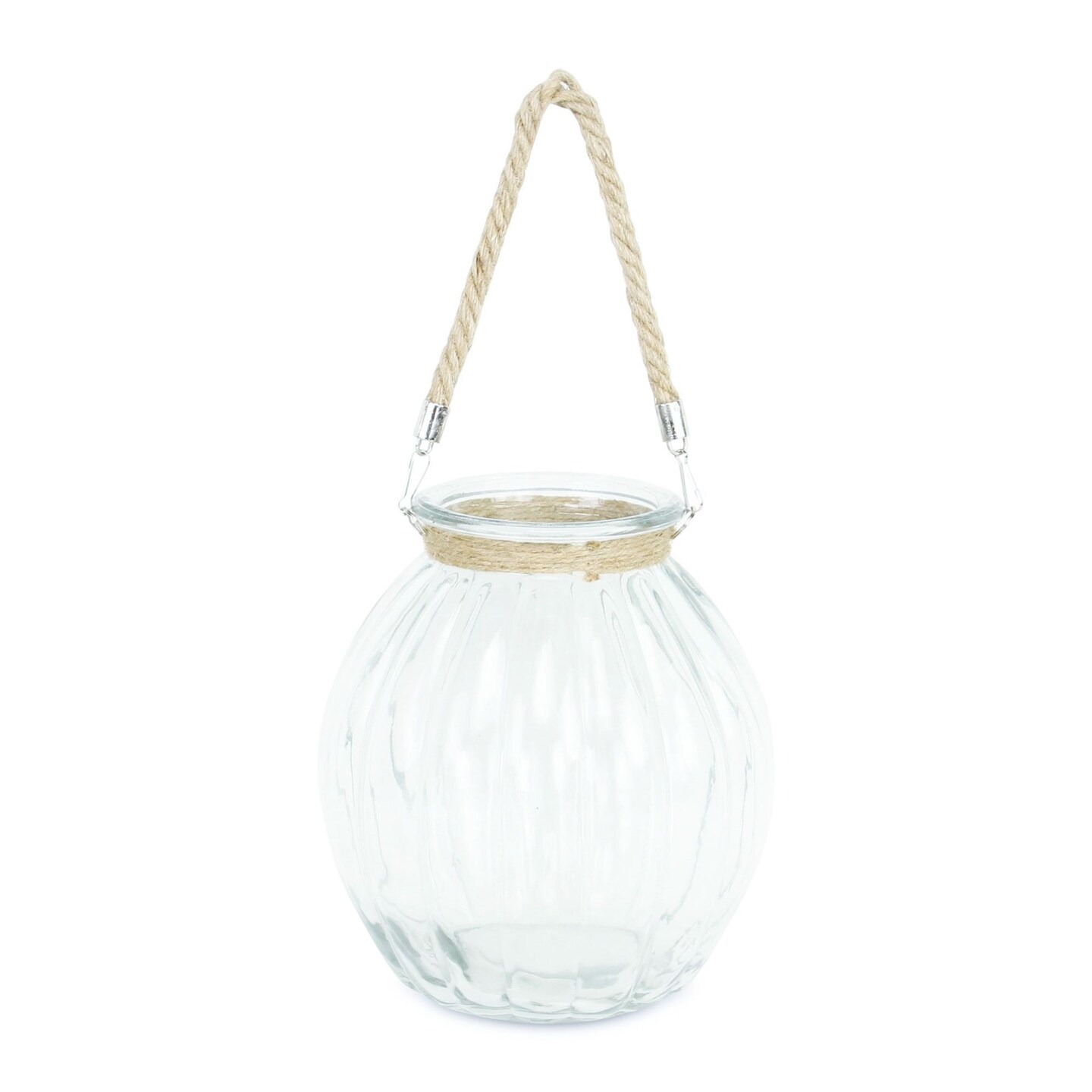 Contemporary Home Living 19" Ribbed Glass Jar with Rope Wrapped Neck