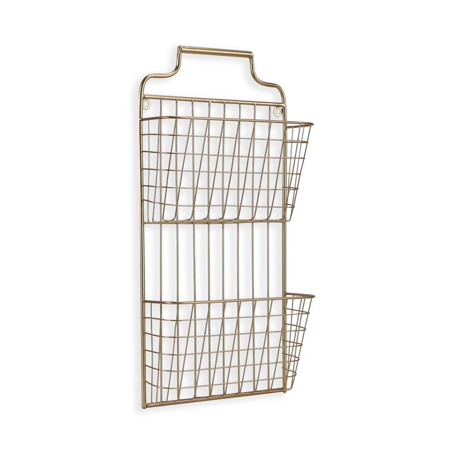 Contemporary Home Living 25.75" Gold 2 Tier Wire Hanging Wall Storage Rack