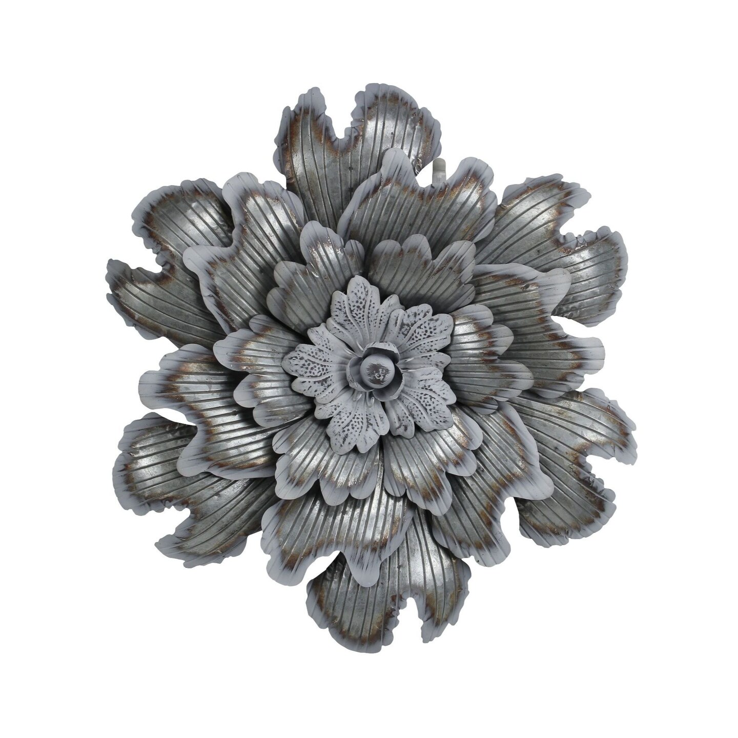Contemporary Home Living 26.5" Gray and Silver Galvanized Flower Wall Decoration
