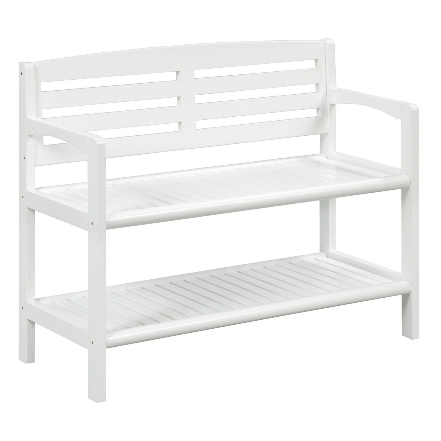 Contemporary Home Living 38" White Solid Large Bench with Back and Shelf