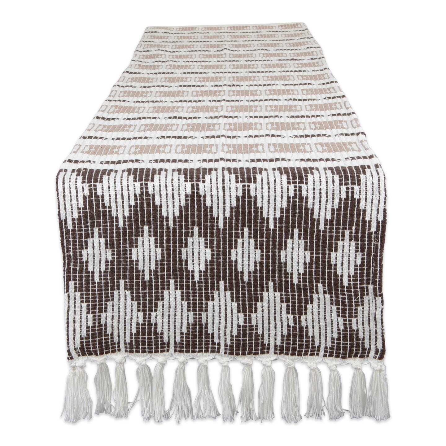Contemporary Home Living Diamond and Chindi Weaves Table Runner with Tassels - 72" - Brown and Beige