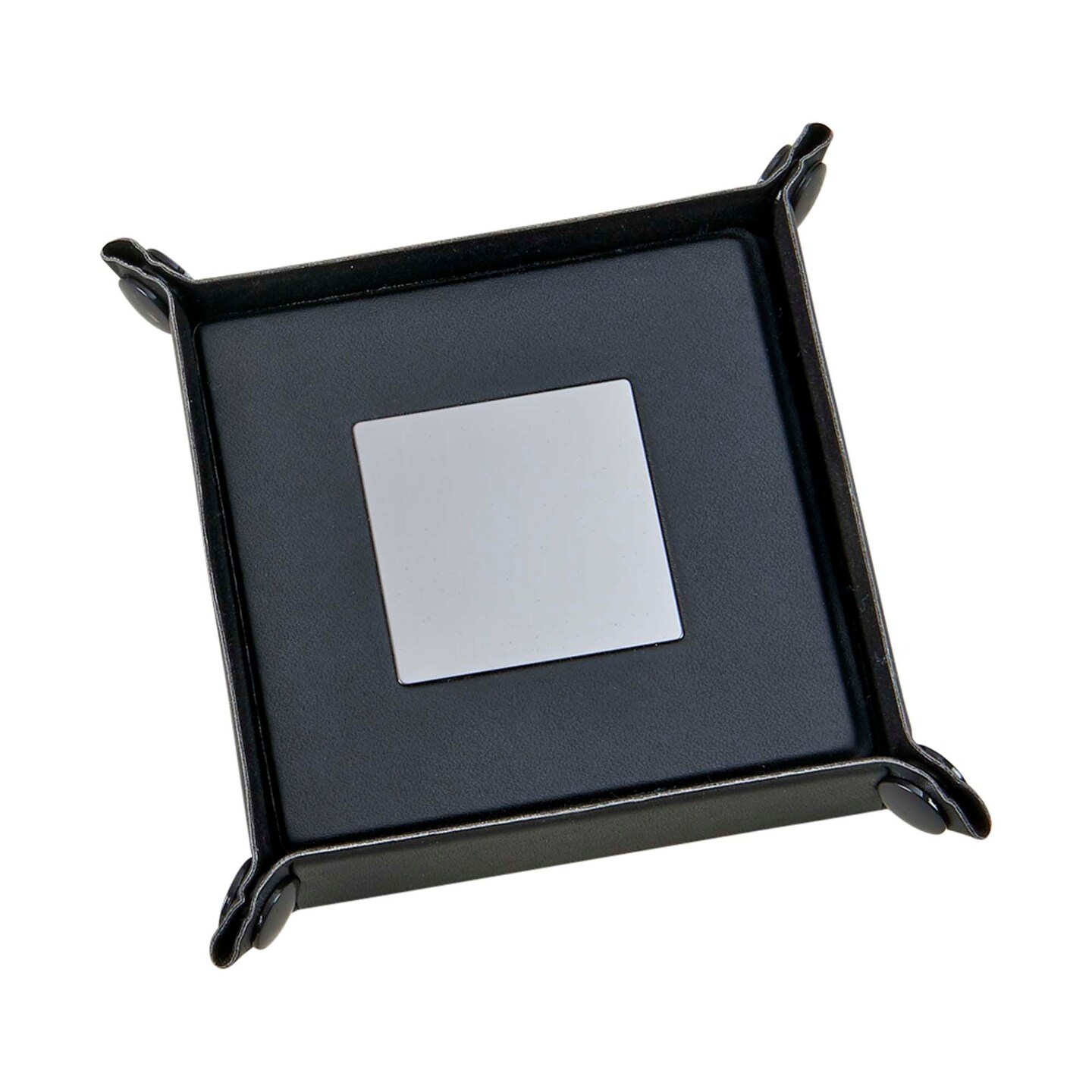 Contemporary Home Living Set of 5 Black And Gray Leather Square Coaster With Snap Tray, 3.5"
