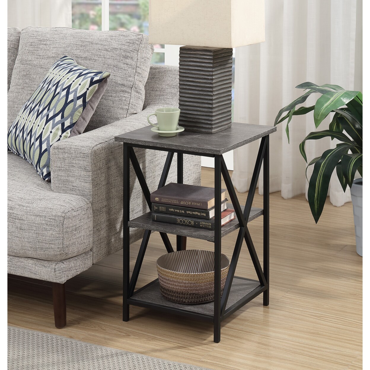 Convenience Concepts Tucson 3 Tier End Table, Weathered Gray