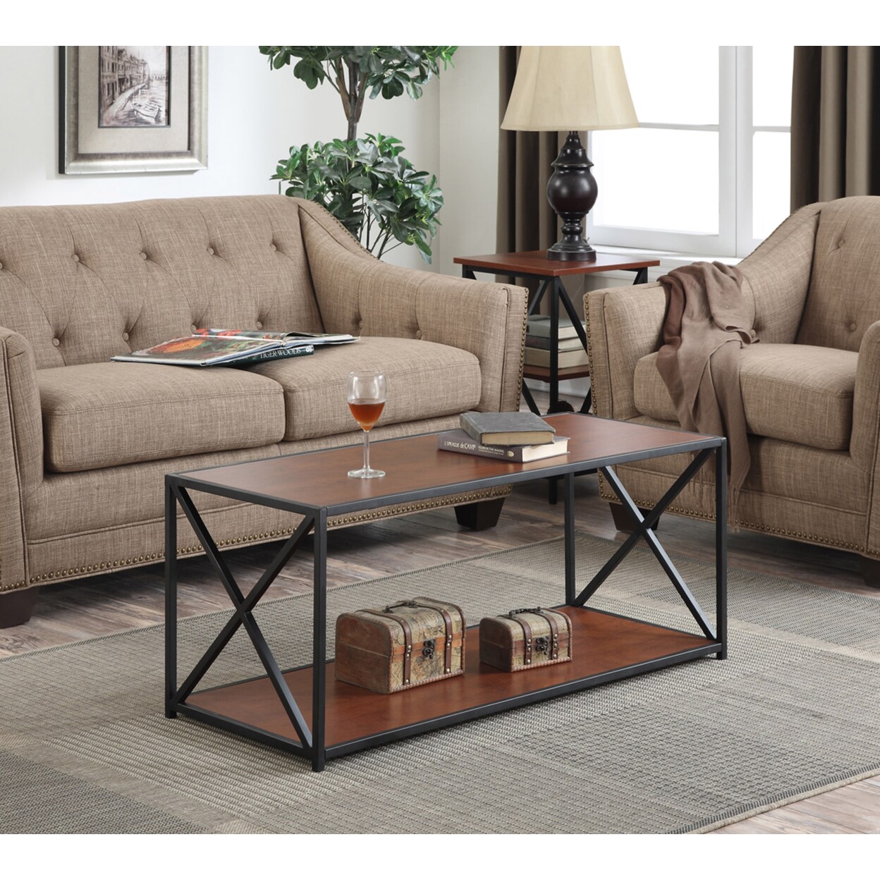 Convenience Concepts Tucson Coffee Table, Black and Cherry