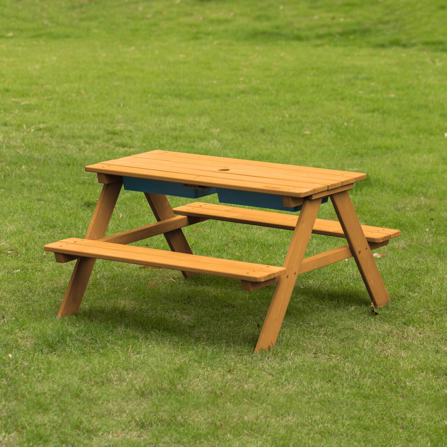 Convertible Wooden Sand and Water Table for your Toddlers Outdoor Playset Featuring 2 Play Box and a Removable Top that Transforms into Kids Picnic Table