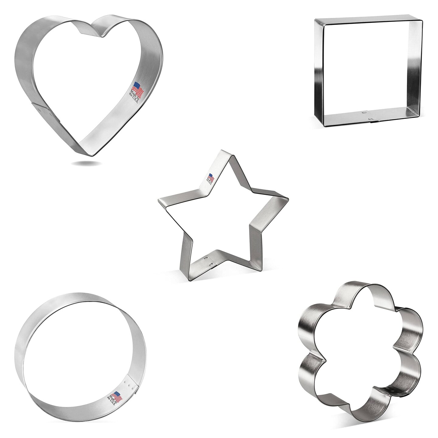 CookieCutter.com Basic General Cookie Cutter 5 Pc Set 3-3.75 in Heart Star Tin Plate Steel USA