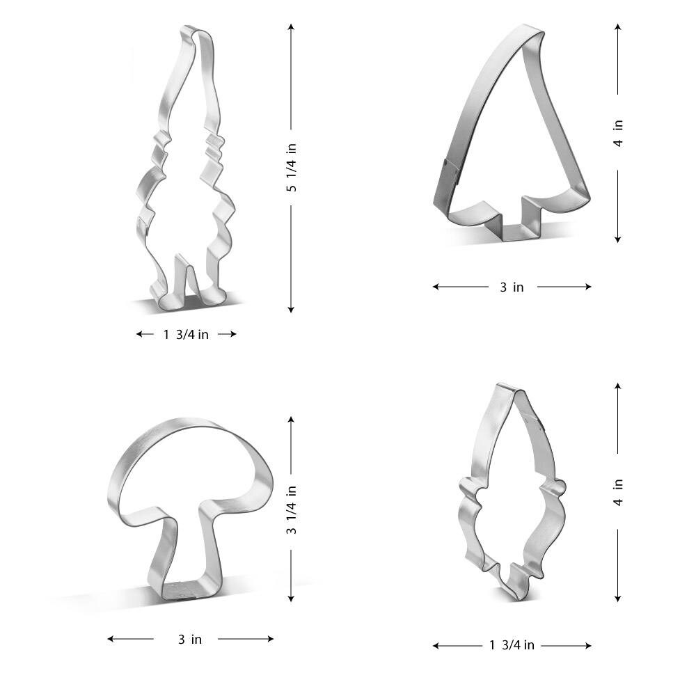 CookieCutter.com Enchanted Woodland Gnome Elf 4 Piece Cookie Cutters Set, Gnome, Dwarf, Mushroom, Tree, Tin Plate Steel, USA