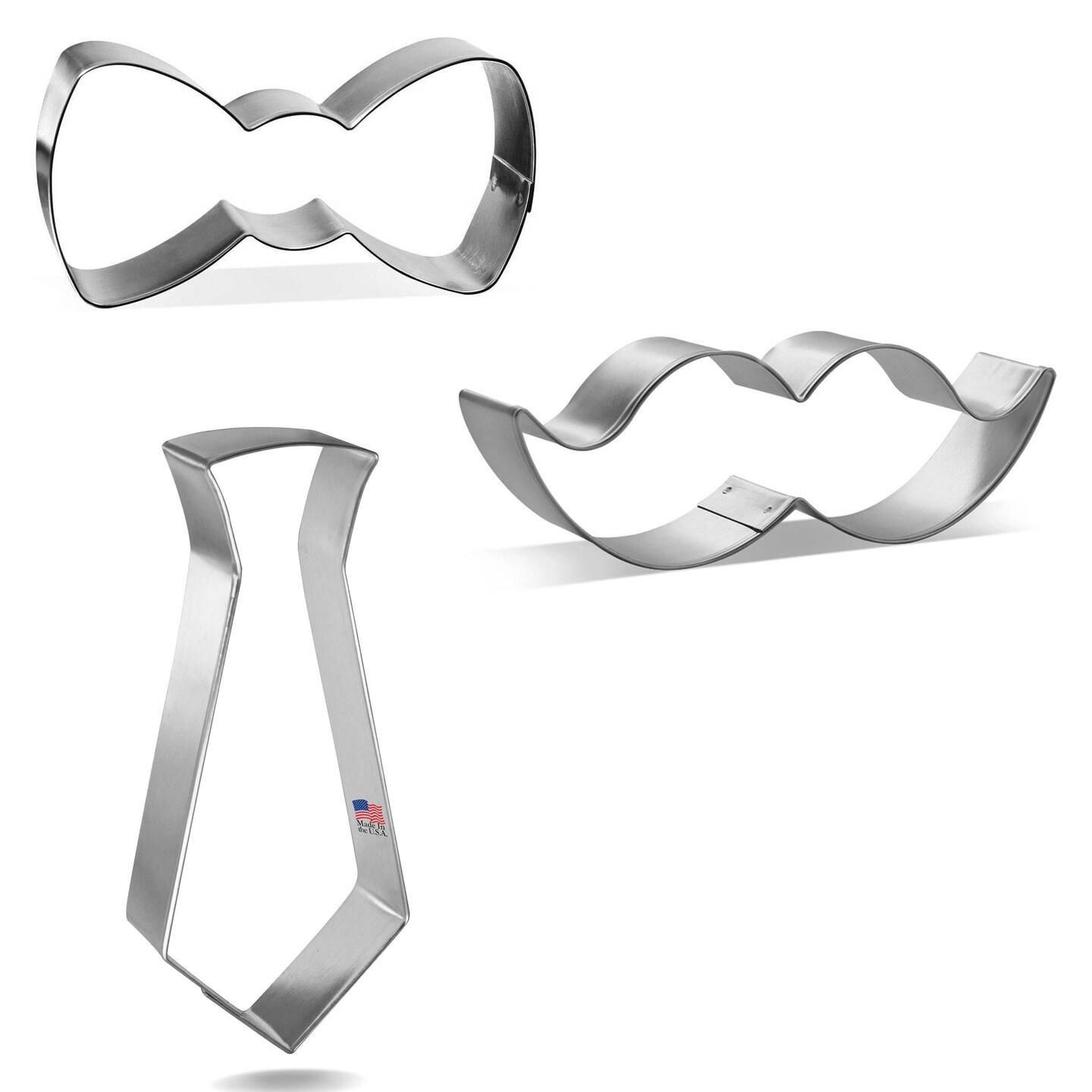 CookieCutter.com Fathers Day 3 Piece Cookie Cutters Set, Mustache, Bow, Tie, Tin Plate Steel, USA