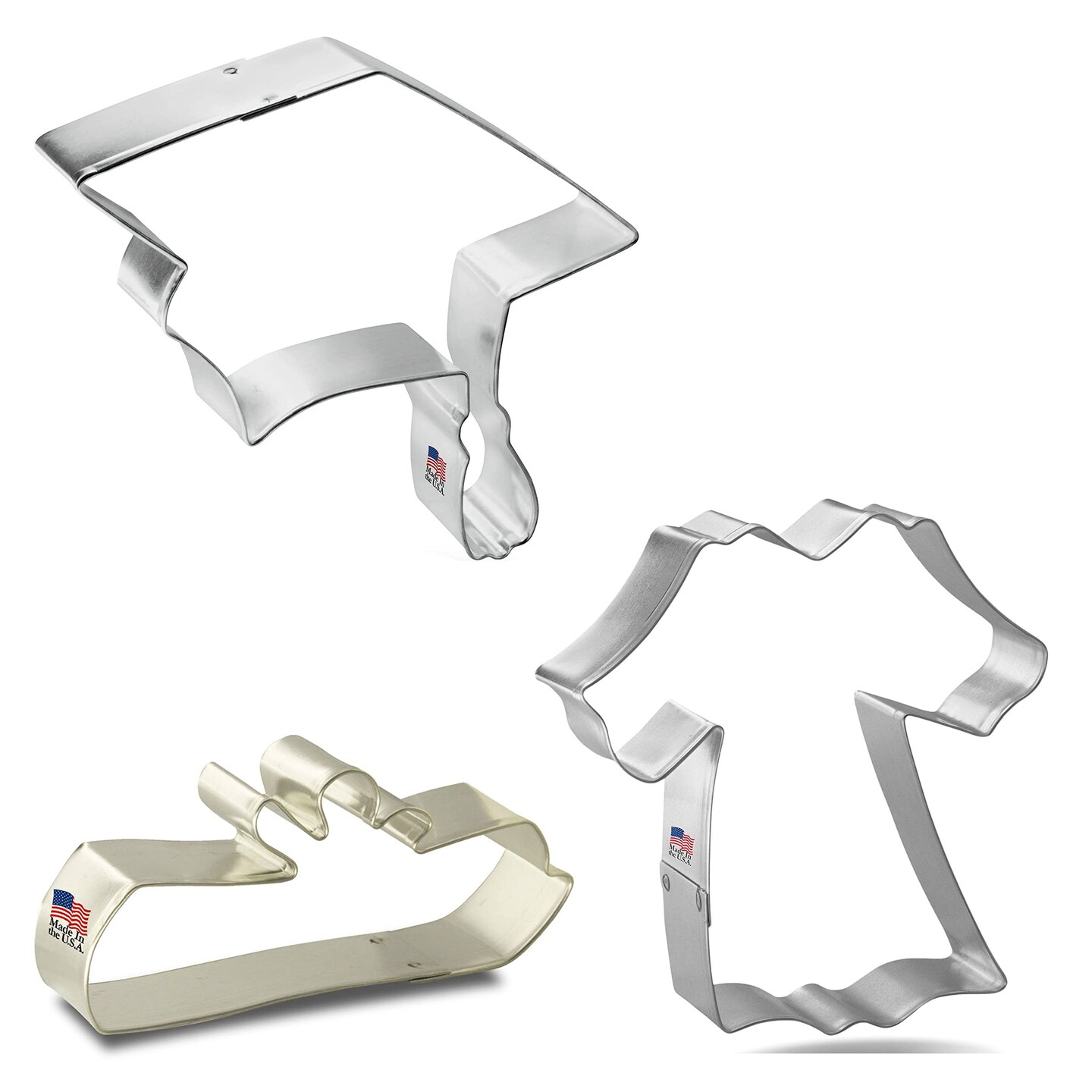 CookieCutter.com Graduation Cookie Cutter 3 Piece Set, 4 - 4.5 in, Cap, Tin Plate Steel, USA