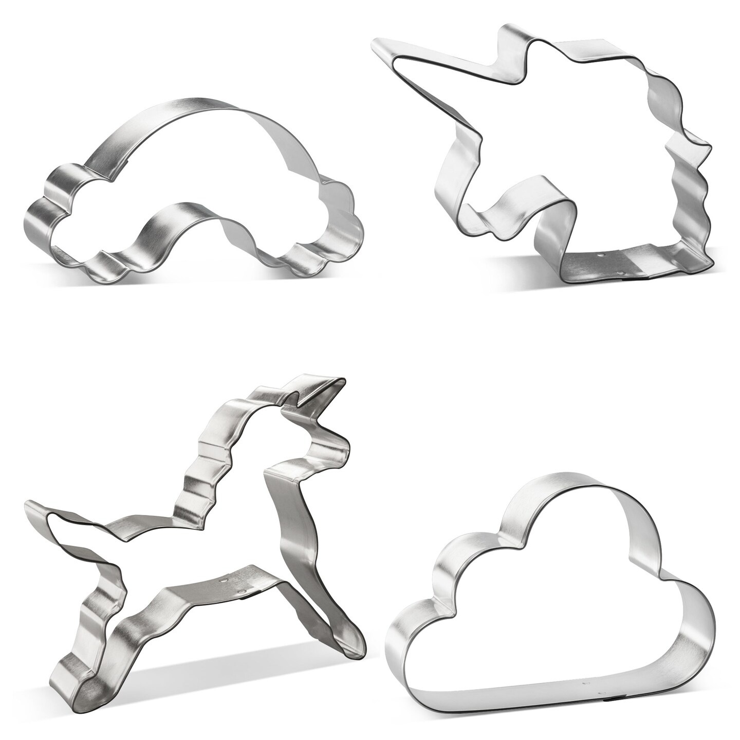 CookieCutter.com Unicorn Birthday 4 Piece Cookie Cutters Set, Rainbow, Unicorn Head, Cloud, Tin Plate Steel, USA
