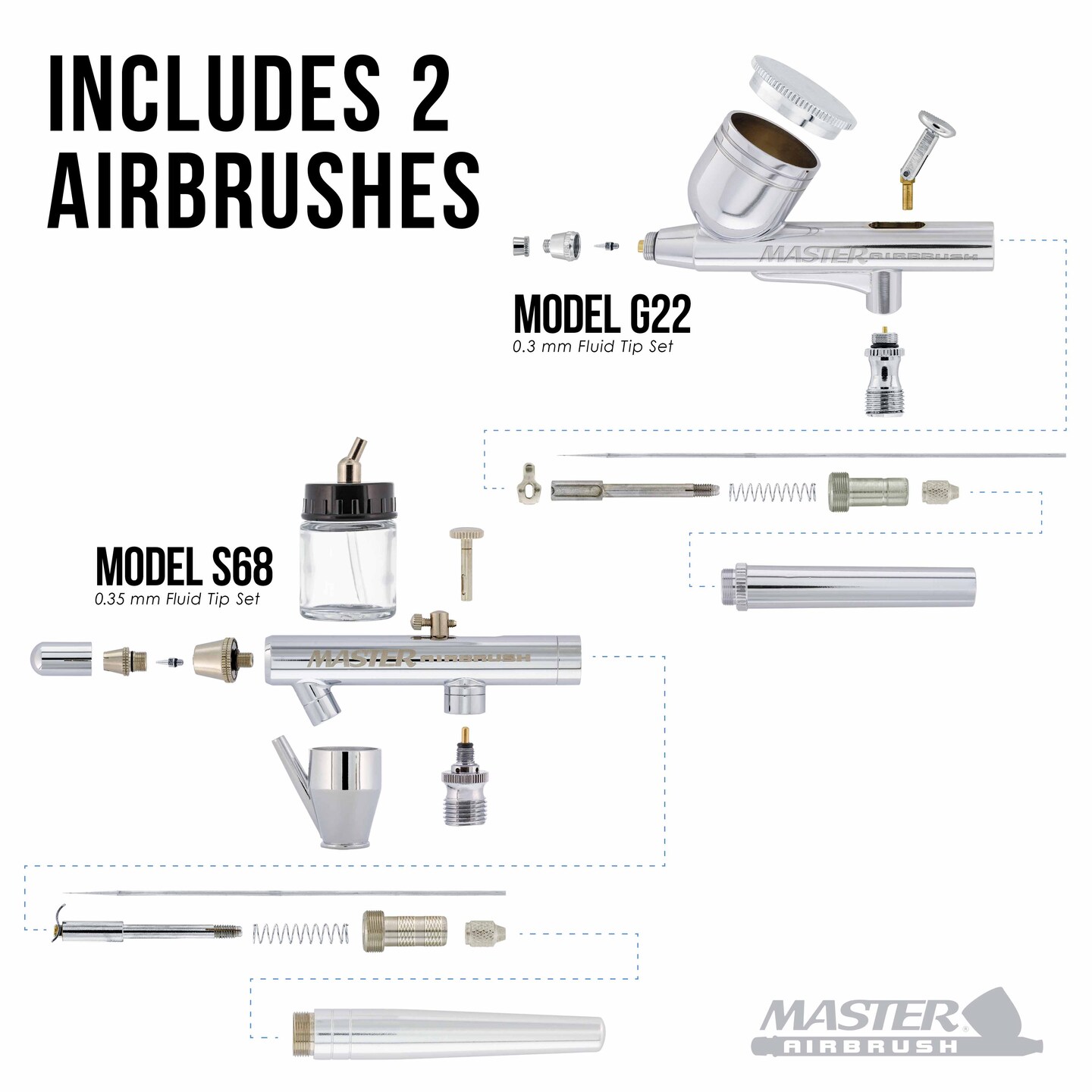 Cool Runner II Dual Fan Air Compressor Airbrushing Acrylic Paint System Kit with 2 Airbrushes, Hose - 6 Primary Paint Colors Set - How To Guide