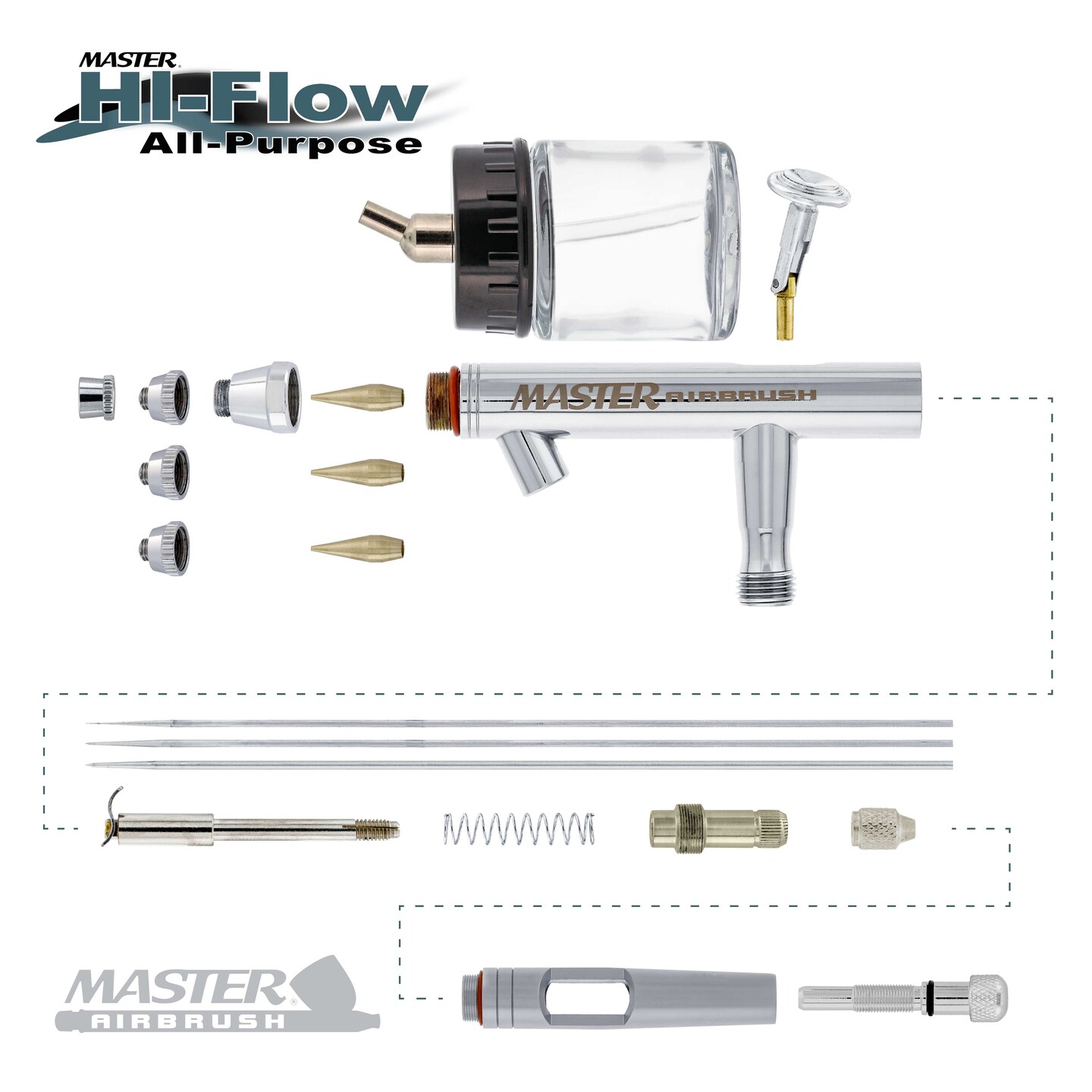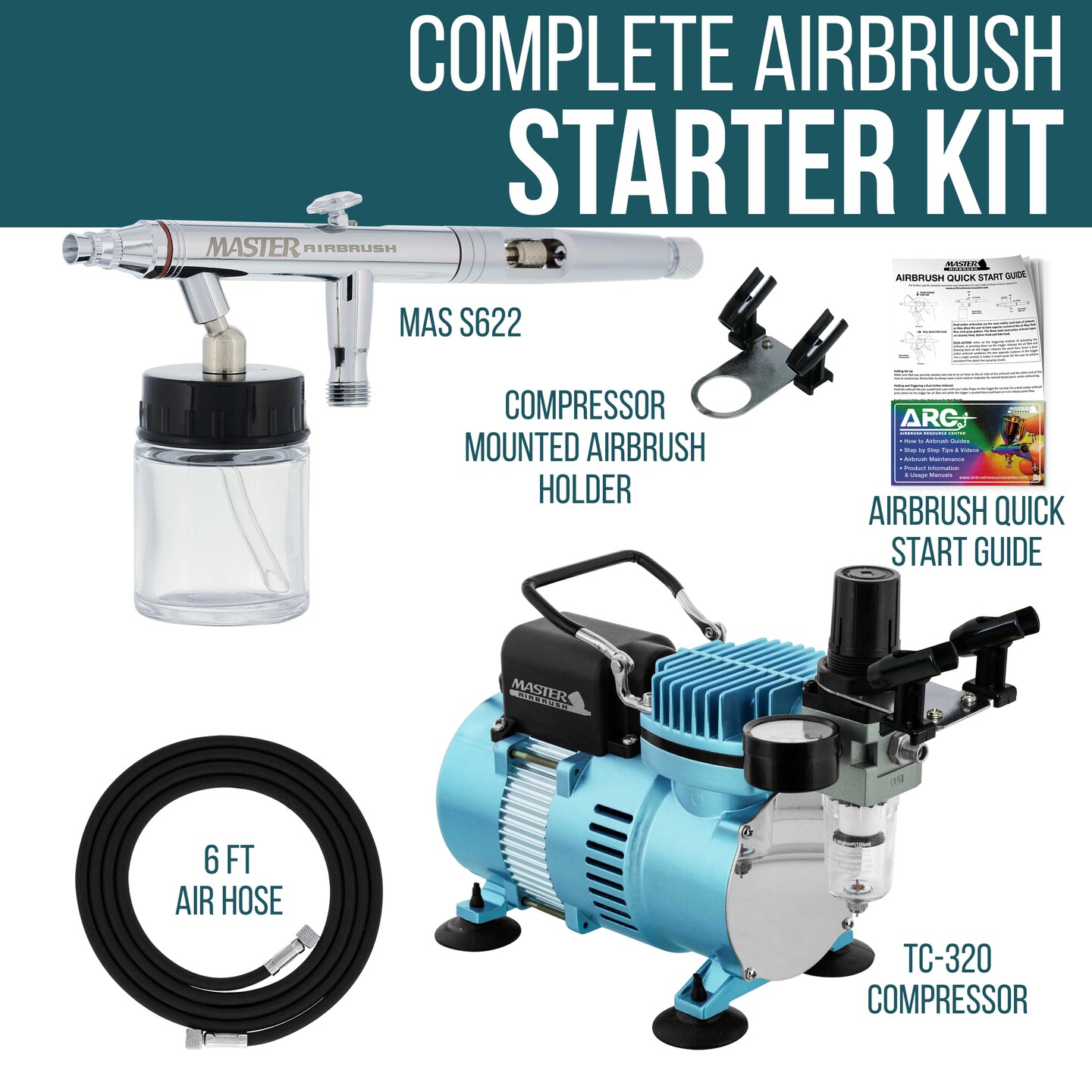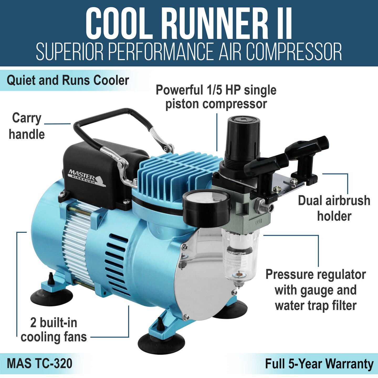 Cool Runner II Dual Fan Air Compressor System Kit with Hi-Flow S622 Pro Set Dual-Action Siphon Feed Airbrush Set with 3 Nozzle Sets (0.3, 0.5 & 0.8mm)