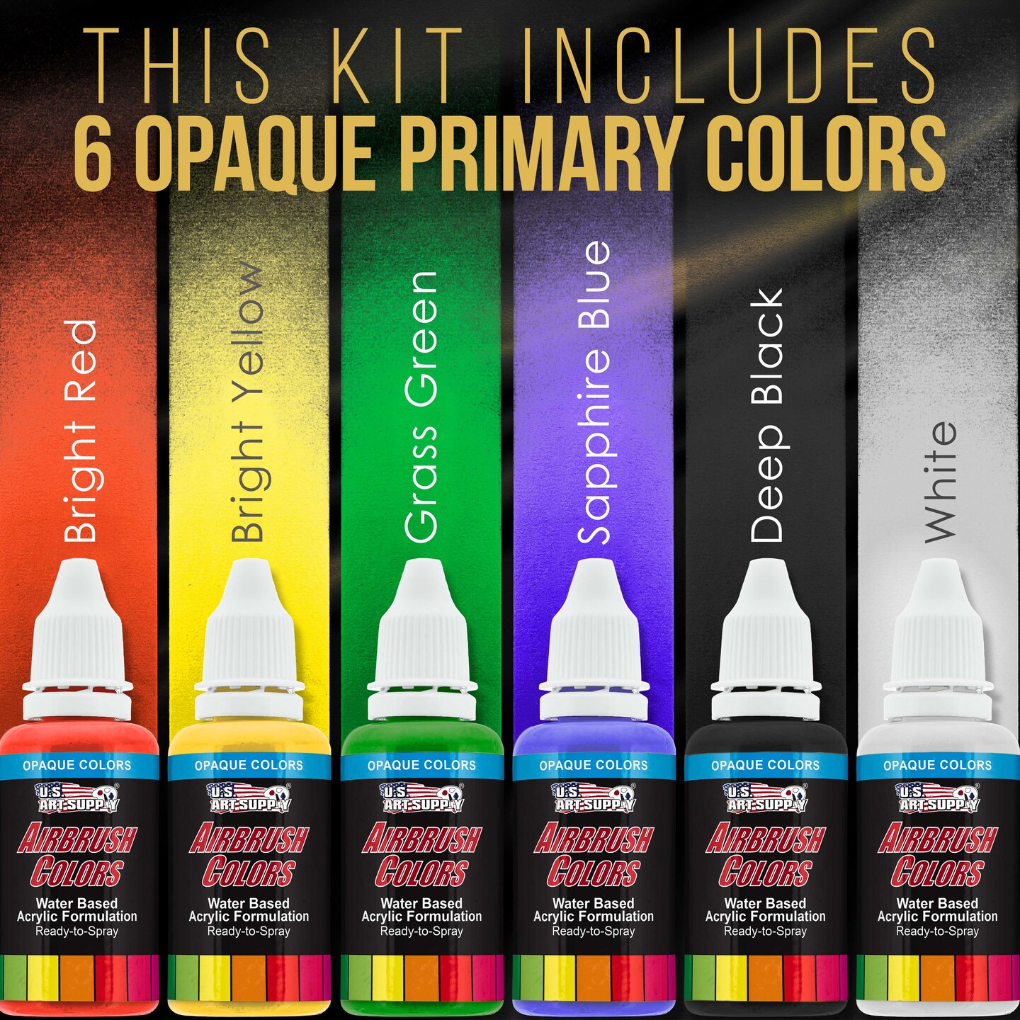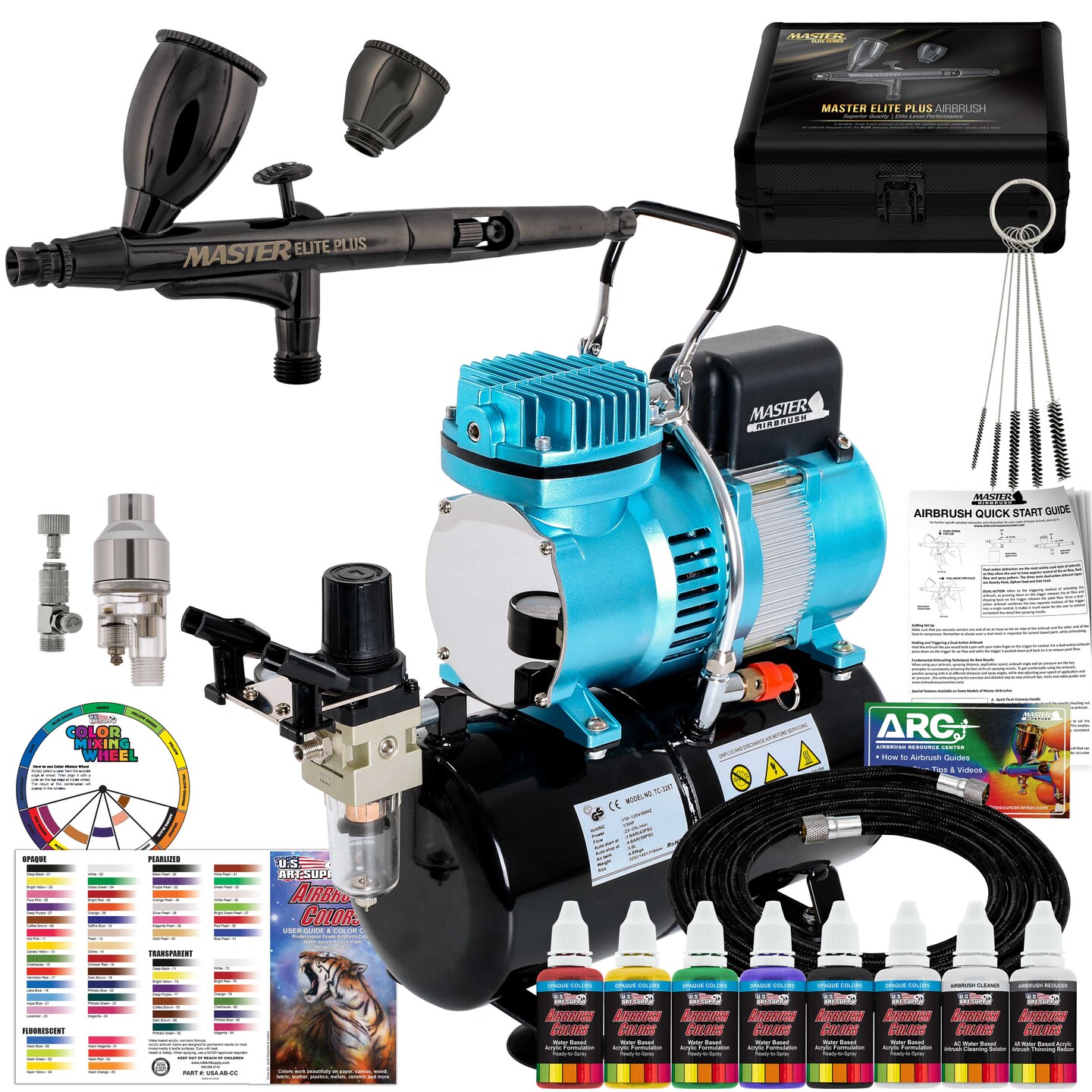 Cool Runner II Dual Fan Air Storage Tank Compressor System Kit, Master Elite Plus Elite Performance Airbrush Set, 6 Color Acrylic Paints