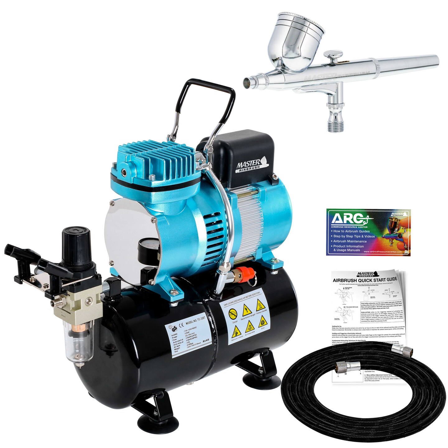 Cool Runner II Dual Fan Air Storage Tank Compressor System Kit with a G22 Gravity Feed Airbrush Set with 0.3 mm Tip - Hose, Holder, How-To Guide