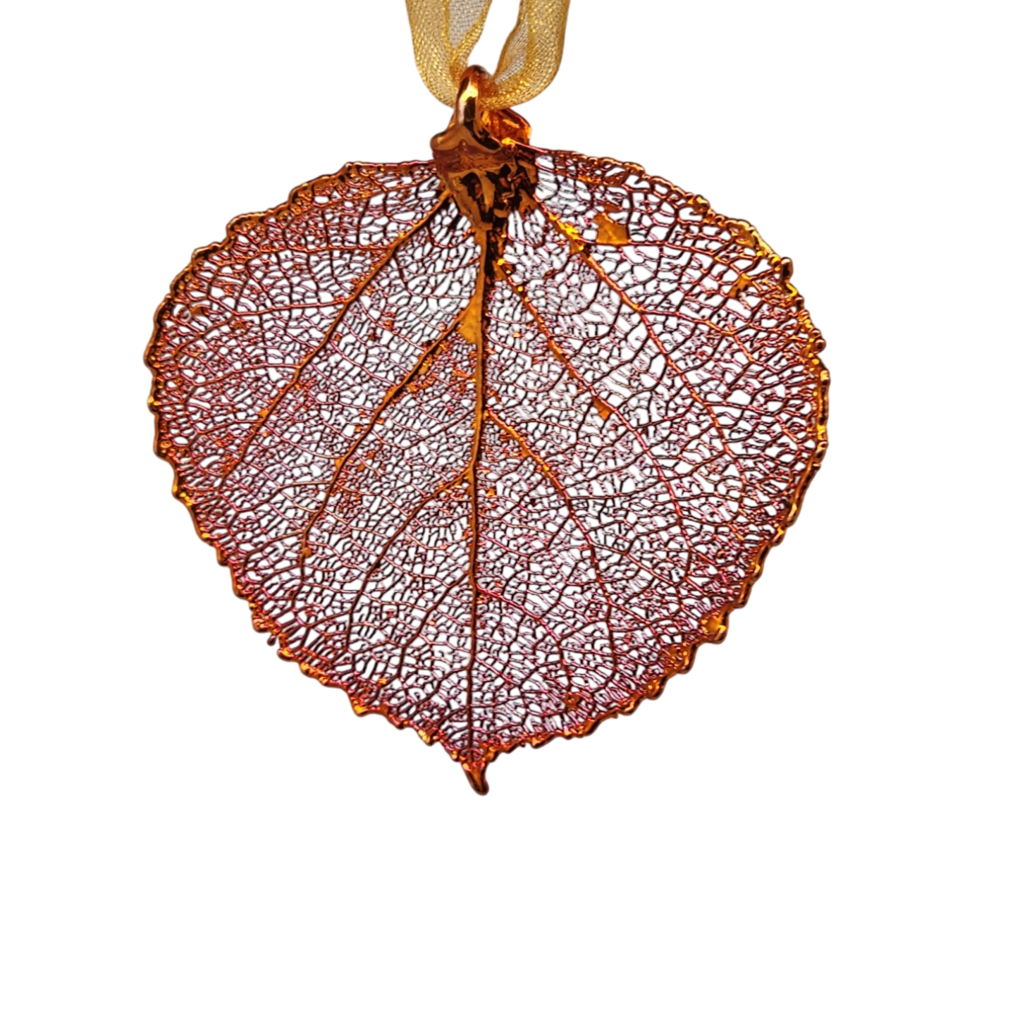 Copper Aspen Leaf with Sheer Ribbon Ornament