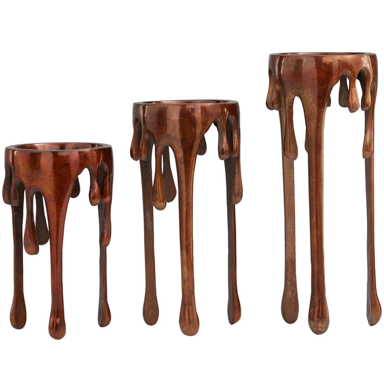 Copper Metal Pillar Candle Holder with Dripping Legs Set