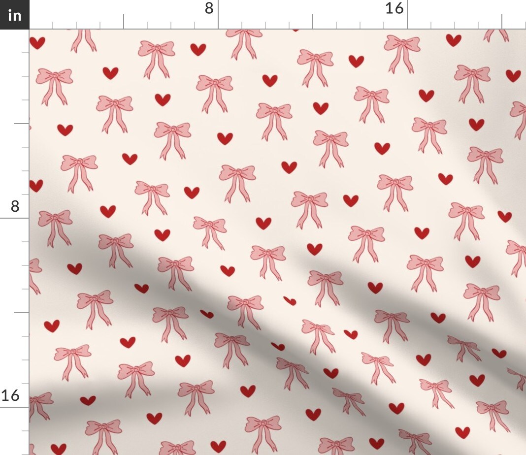 Coquette Valentine'S Day Preppy Pink Red Bows Hearts Romance Girls Love Valentine Vintage Classic Novelty Simple Custom Printed Fabric by Spoonflower Various Fabrics by the Yard or Fat Quarter