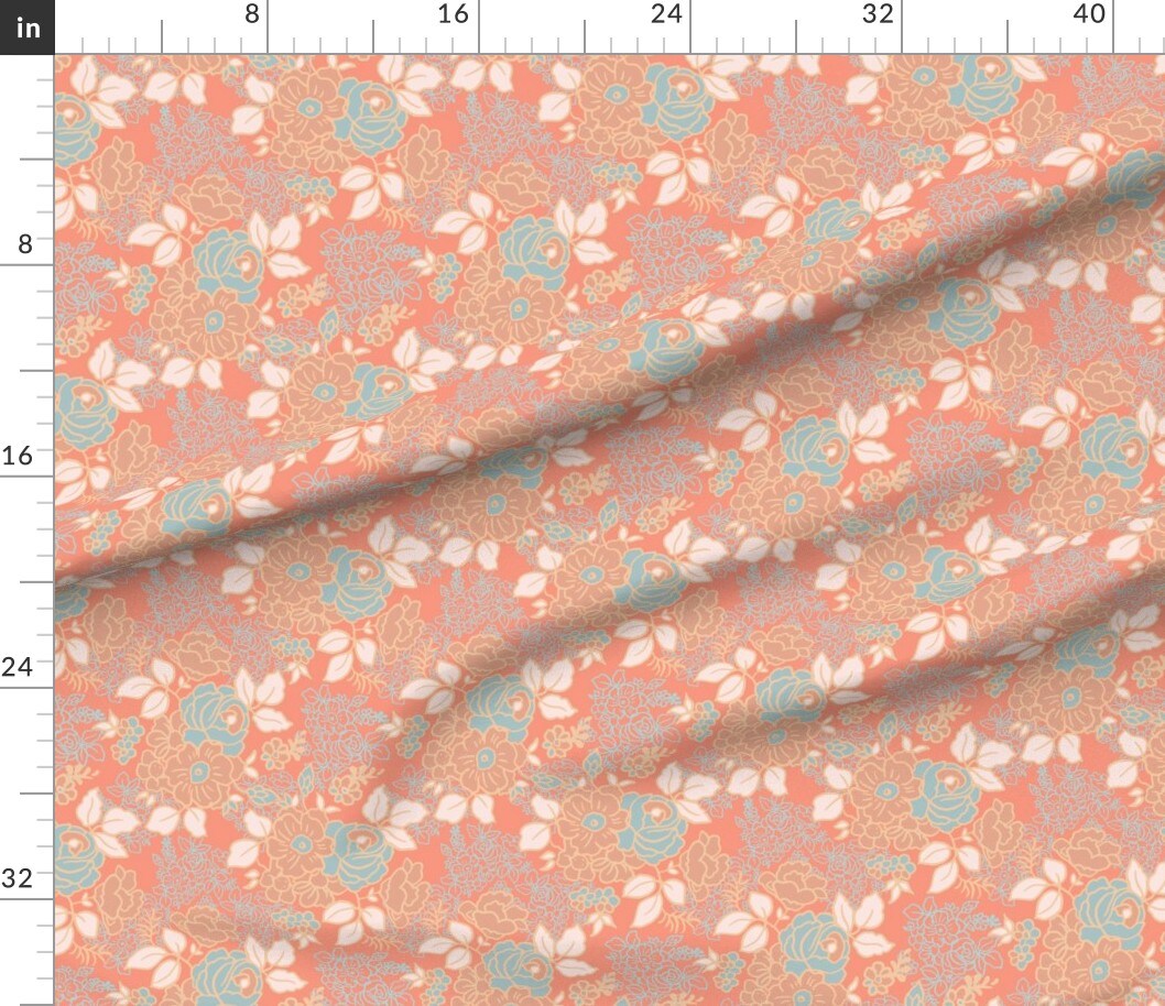 Coral Floral Spring Flowers Roses Romantic Feminine Custom Printed Fabric by Spoonflower Various Fabrics by the Yard or Fat Quarter