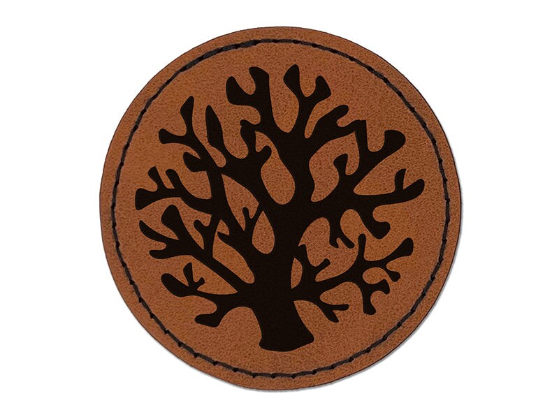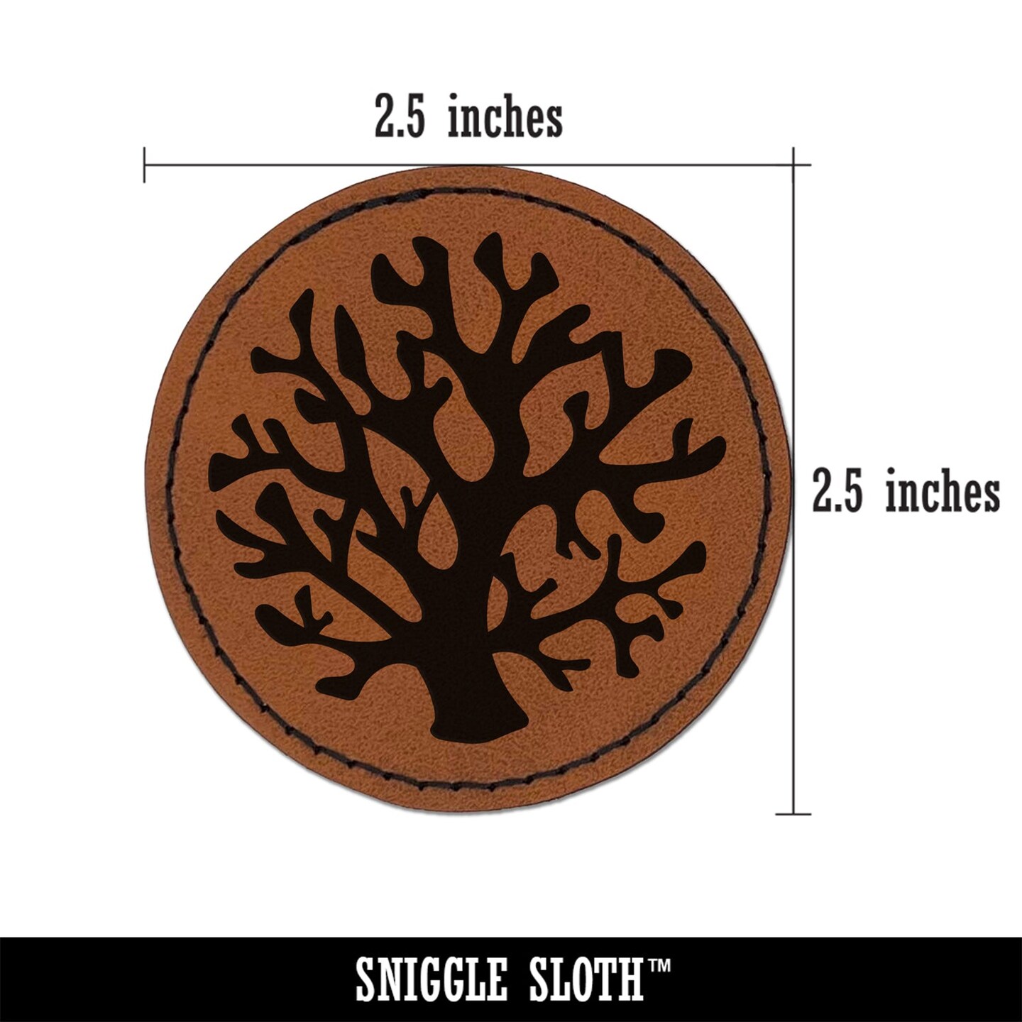 Coral from the Ocean Reef Round Iron-On Engraved Faux Leather Patch Applique - 2.5"