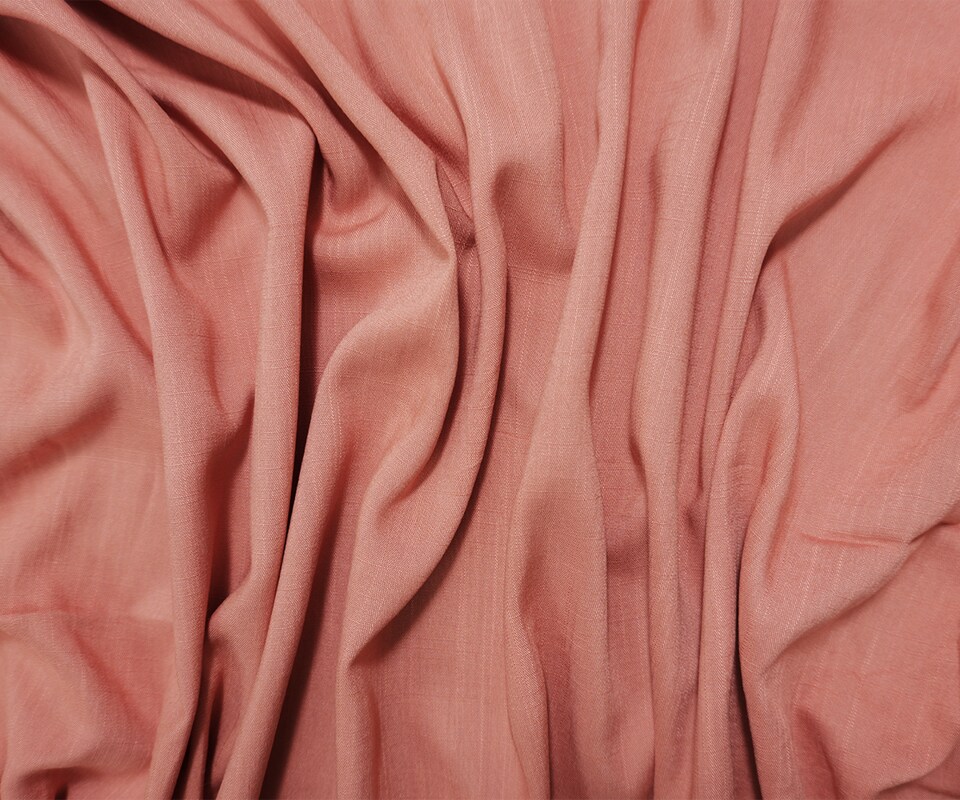 Coral Rayon Solid Cross Hatch Linen-Look Challis Woven Fabric By the Yard