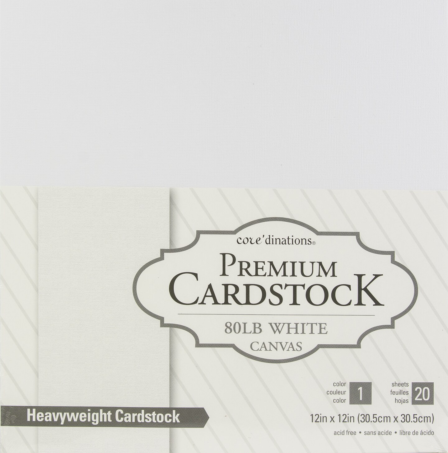Core'dinations Value Pack Cardstock 12"X12" 80lb 20/Pkg-White Canvas