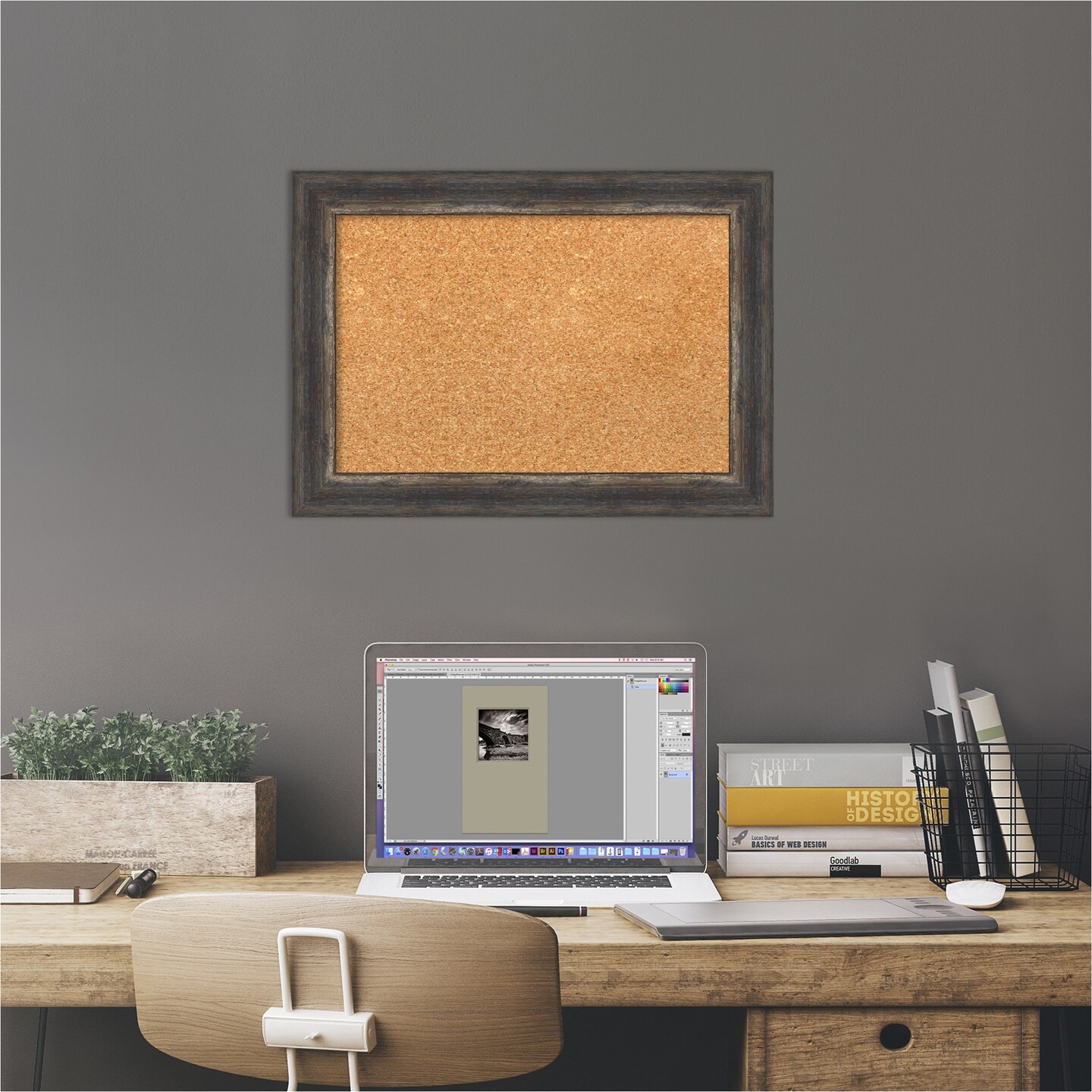 Cork Board, Bark Rustic Char Narrow Frame - Bulletin Board, Organization Board, Pin Board