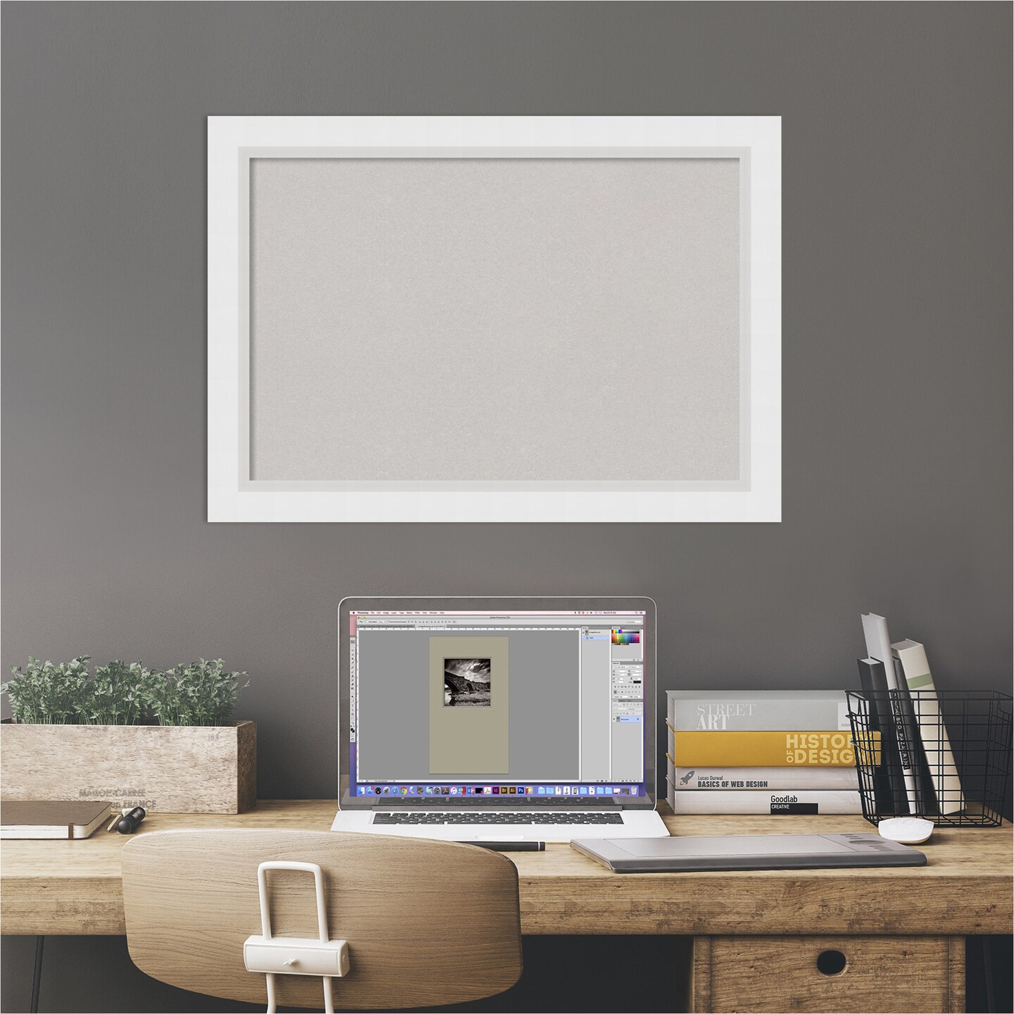 Cork Board, Blanco White Wood Frame - Bulletin Board, Organization Board, Pin Board
