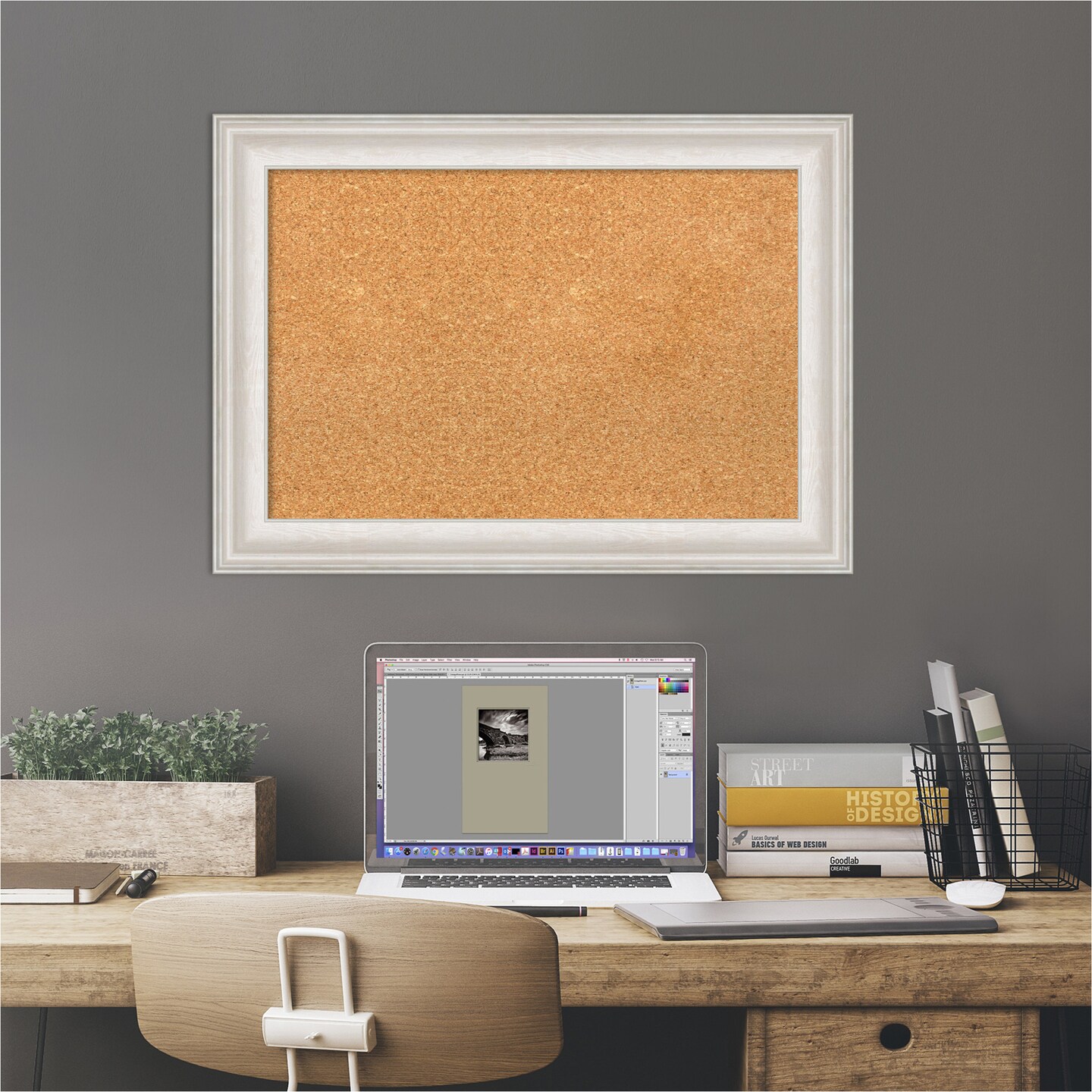 Cork Board, Trio White Wash Silver Frame - Bulletin Board, Organization Board, Pin Board