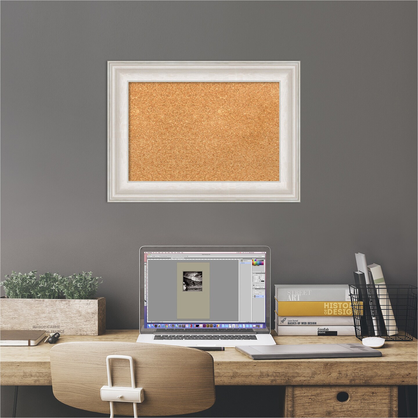 Cork Board, Trio White Wash Silver Frame - Bulletin Board, Organization Board, Pin Board