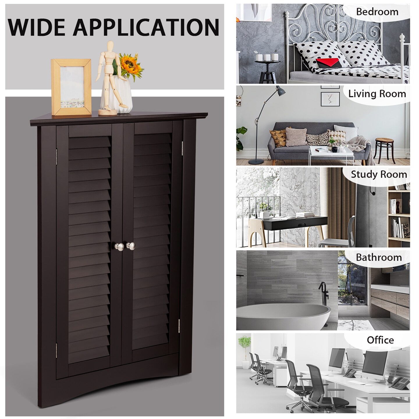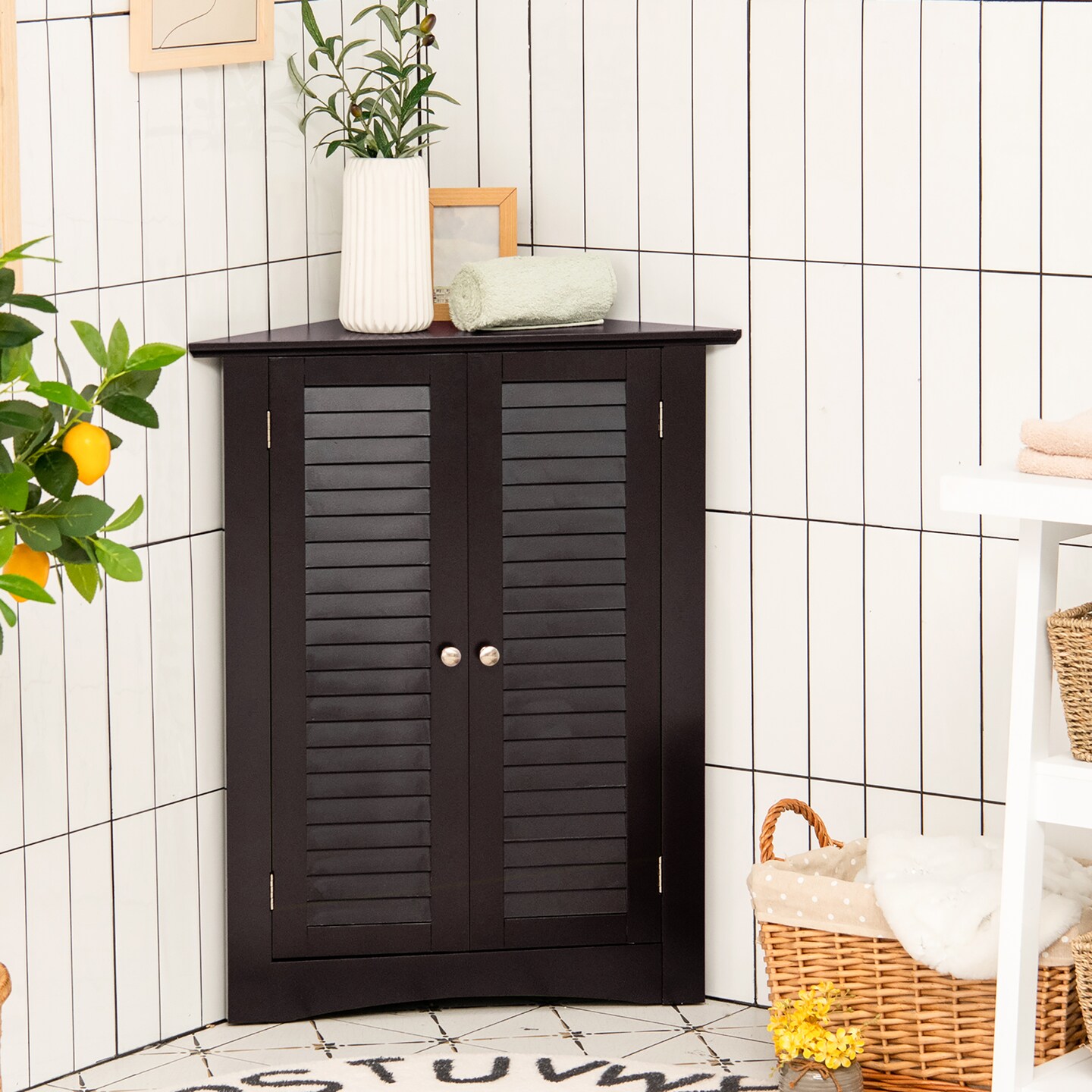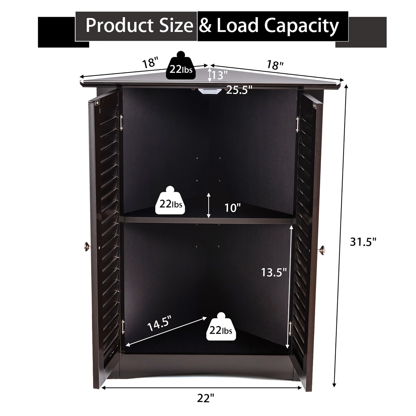 Corner Storage Cabinet Freestanding Floor Cabinet Bathroom w/ Shutter Door Grey\Brown