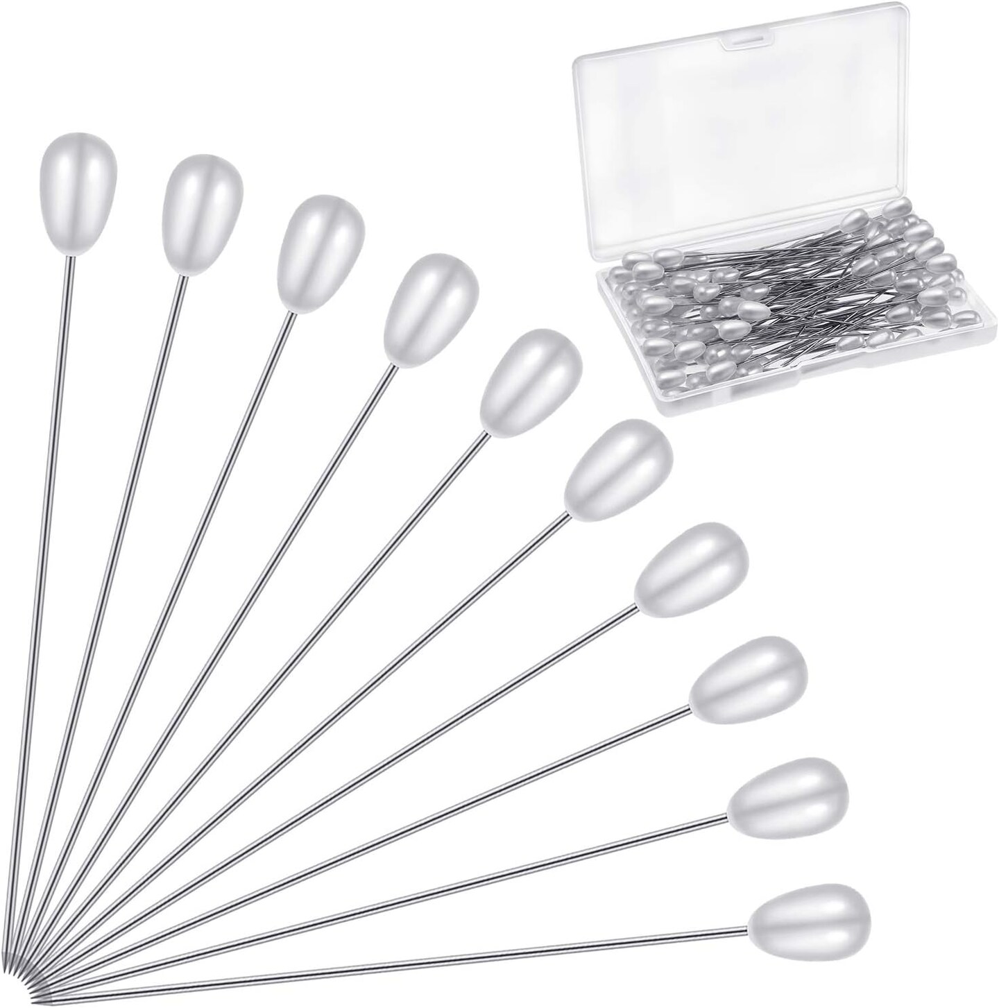 Corsage Boutonniere Pins Teardrop Pearl Bouquet White Straight Head Pins for DIY Crafts Jewelry Making Sewing Wedding Flower Decorations (100 Pieces with 1 Box)