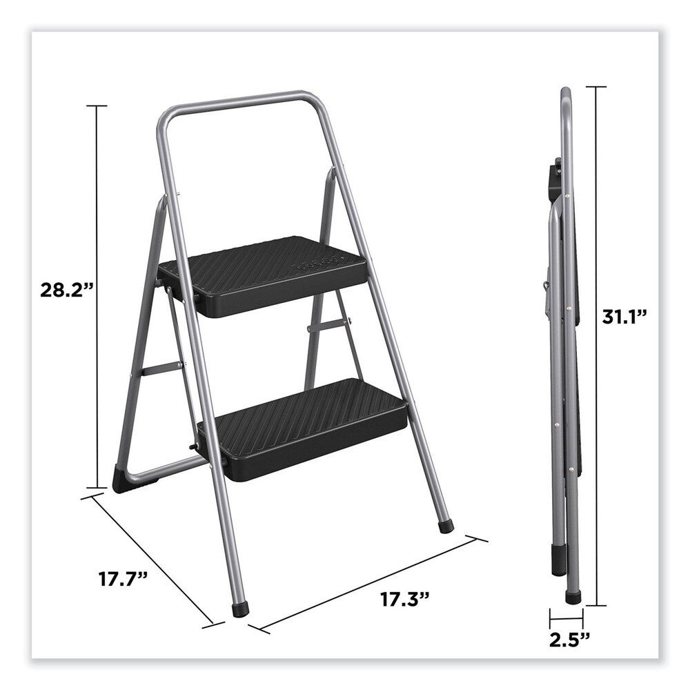 Cosco 28.13 in. Working Height 200 lbs. Capacity 2-Step Folding Steel Step Stool - Cool Gray