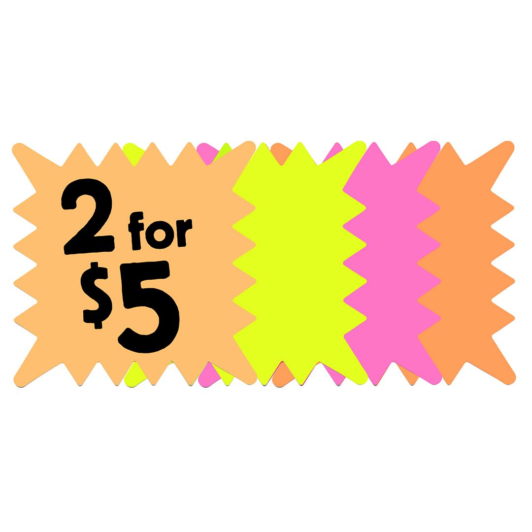 COSCO Write-On Signs, Die-Cut Burst Shape, Multi-Color Fluorescent Colors, 5" x 5", 48 signs (12 of each color)