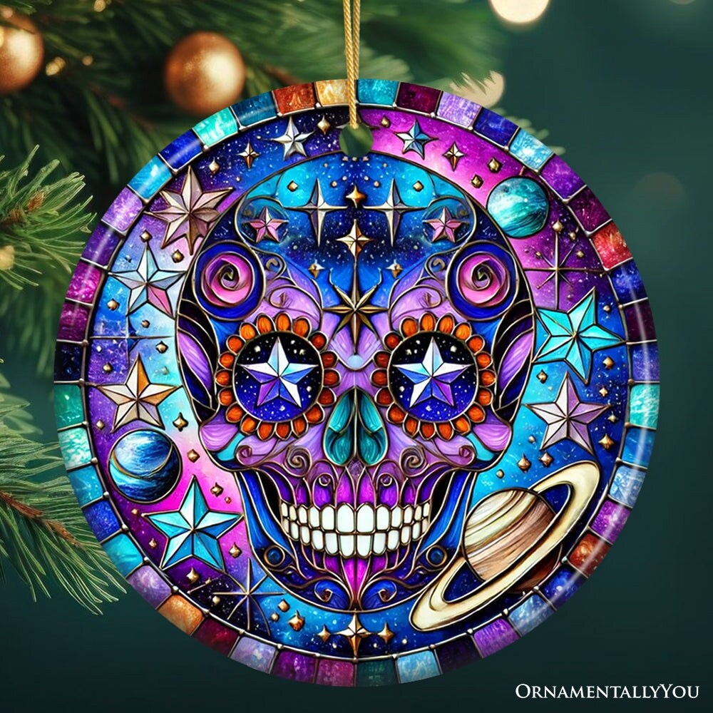 Cosmic Celestial Sugar Skull Ornament, Stellar Christmas Gift and Decor