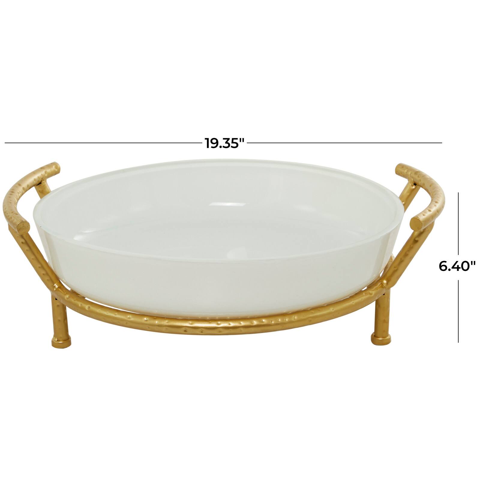 CosmoLiving by Cosmopolitan 19" White Glass Kitchen Serving Bowl with Gold Metal Stand