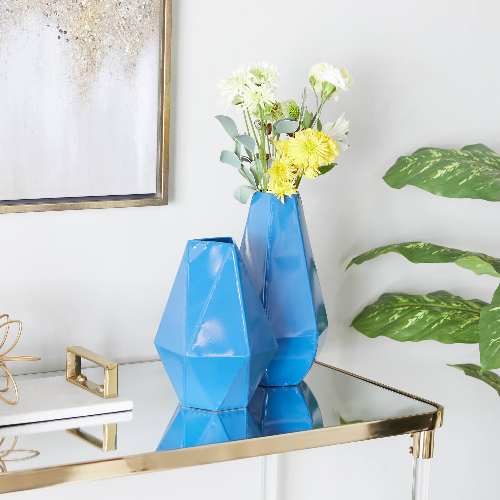 CosmoLiving by Cosmopolitan Blue Iron Contemporary Vase, 12" x 10"