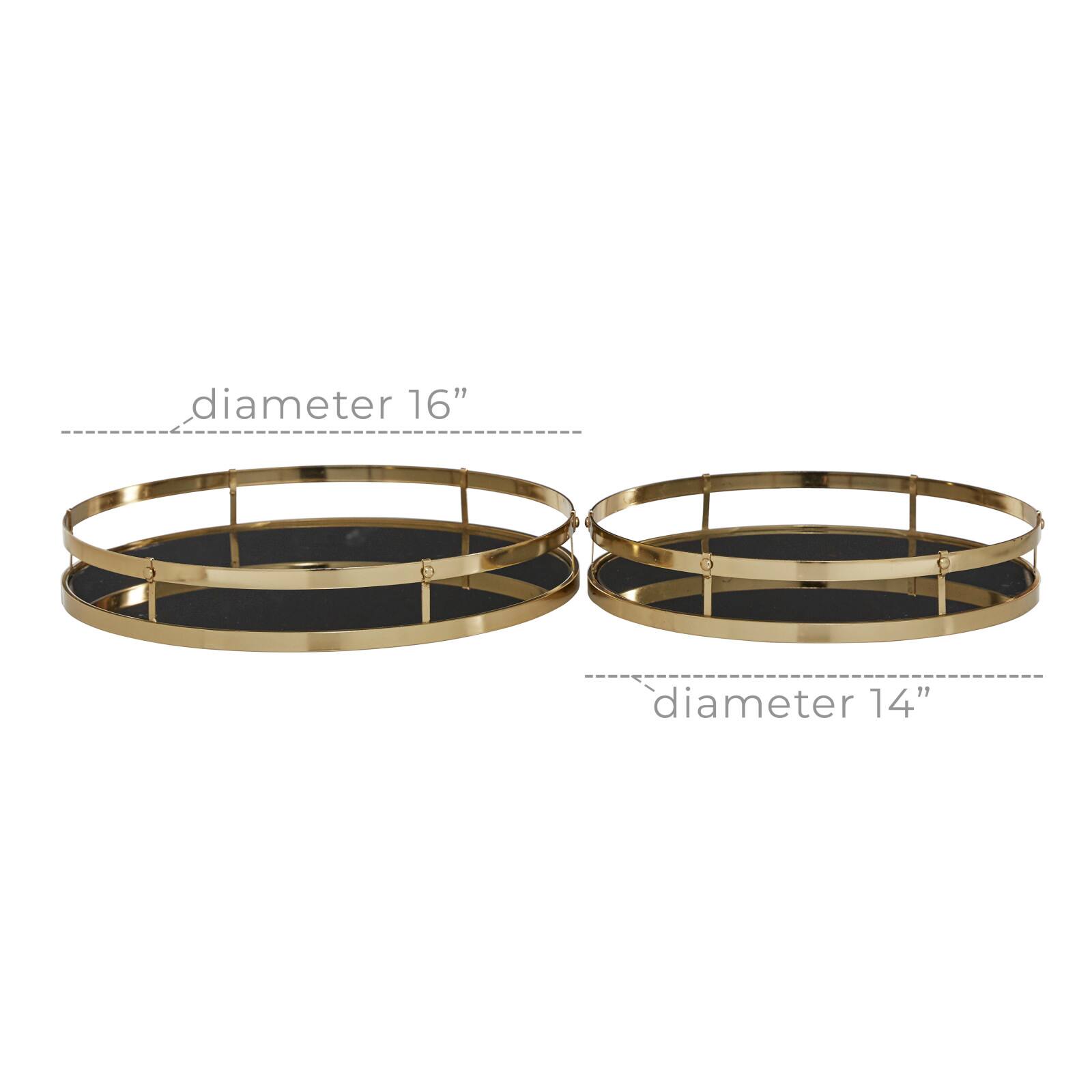 CosmoLiving by Cosmopolitan Set of 2" Gold Metal Glam Tray, 14", 16"