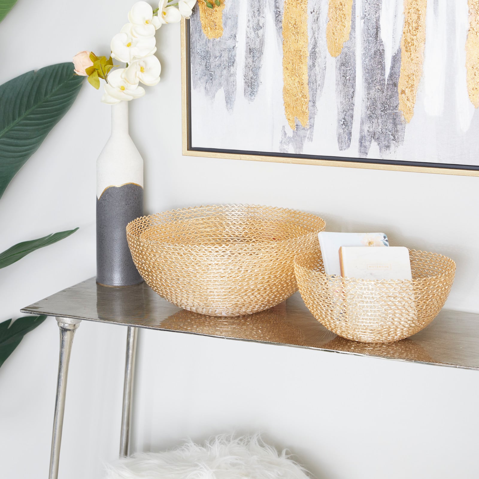 CosmoLiving by Cosmopolitan Set of 3" Gold Metal Glam Decorative Bowl, 16" x 16" x 16"