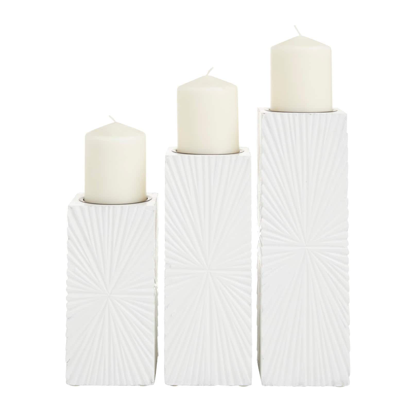 CosmoLiving by Cosmopolitan Set of 3 White MDF Contemporary Candle Holder, 12" x 4" x 4"