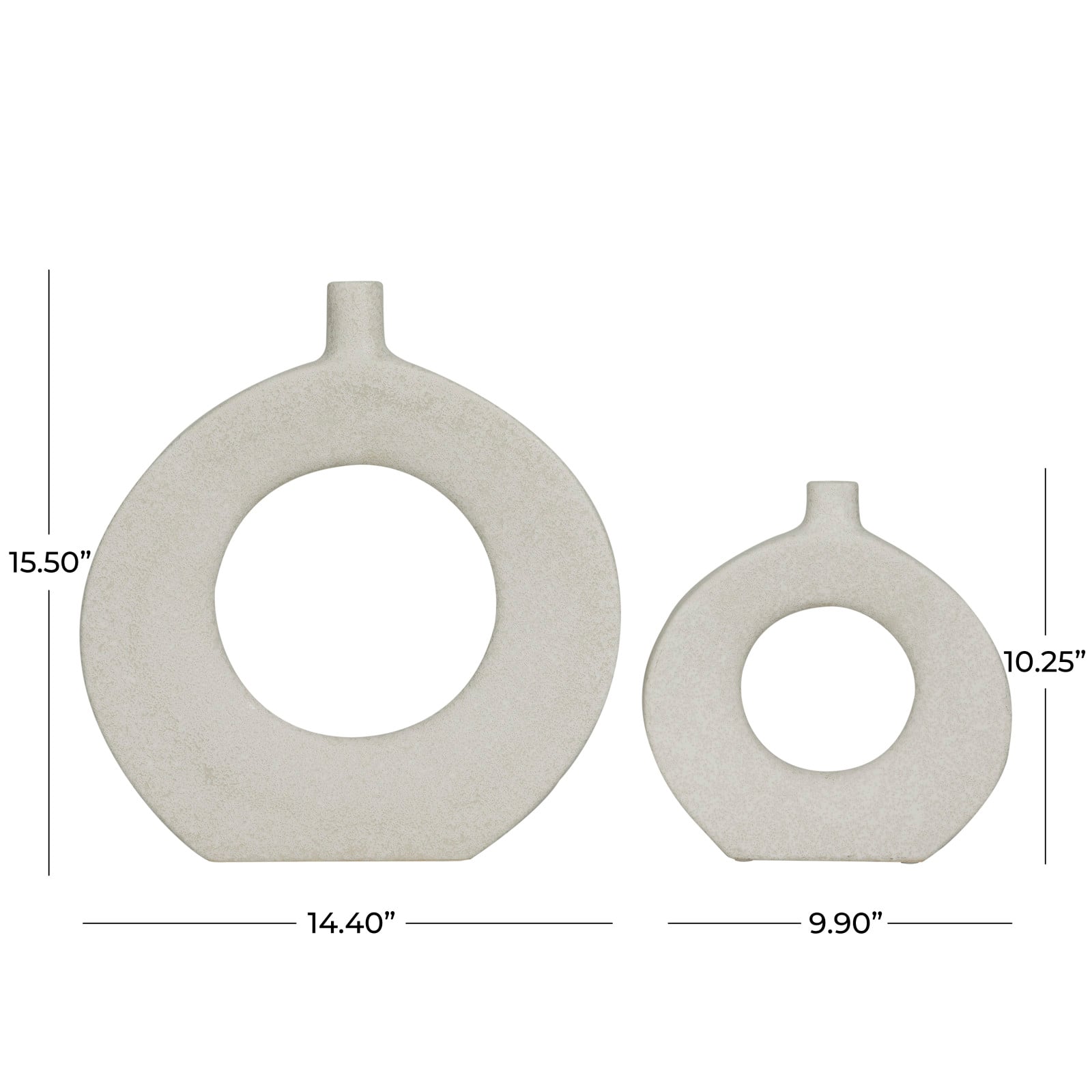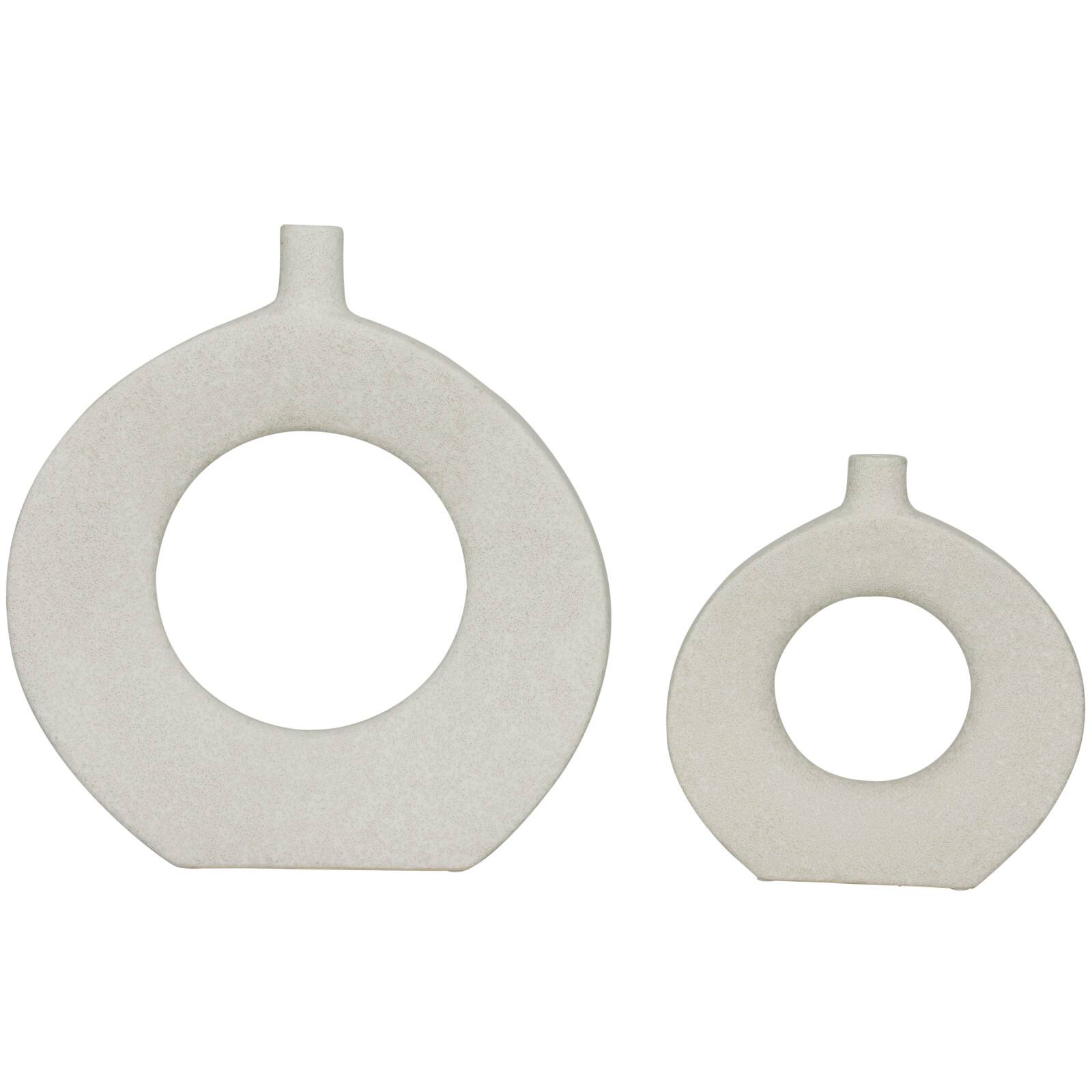 CosmoLiving by Cosmopolitan White Ceramic Round Donut Shaped Vase Set of 2 16", 10"