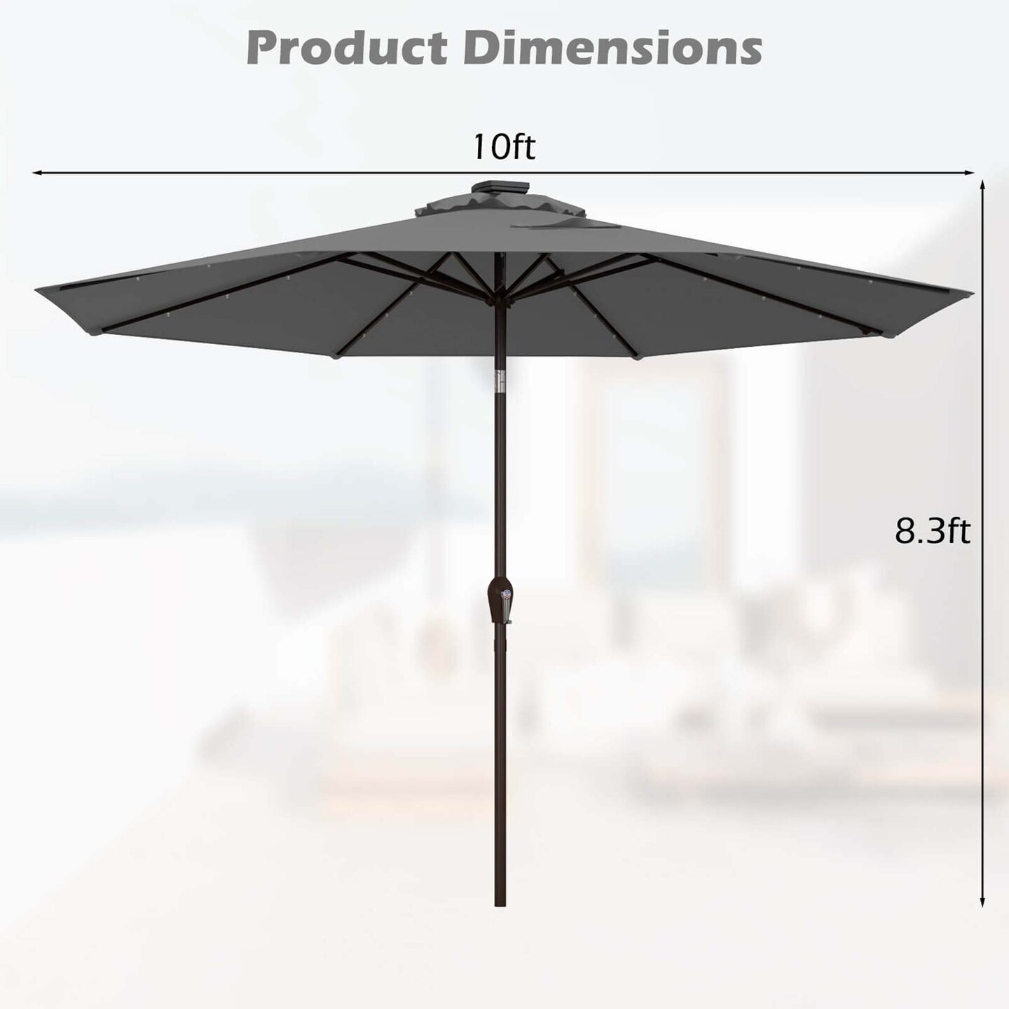 Costway 10' Solar LED Lighted Patio Market Umbrella Shade Tilt Adjustment Crank Tan/Beige/Blue/Navy/Burgundy/Gray