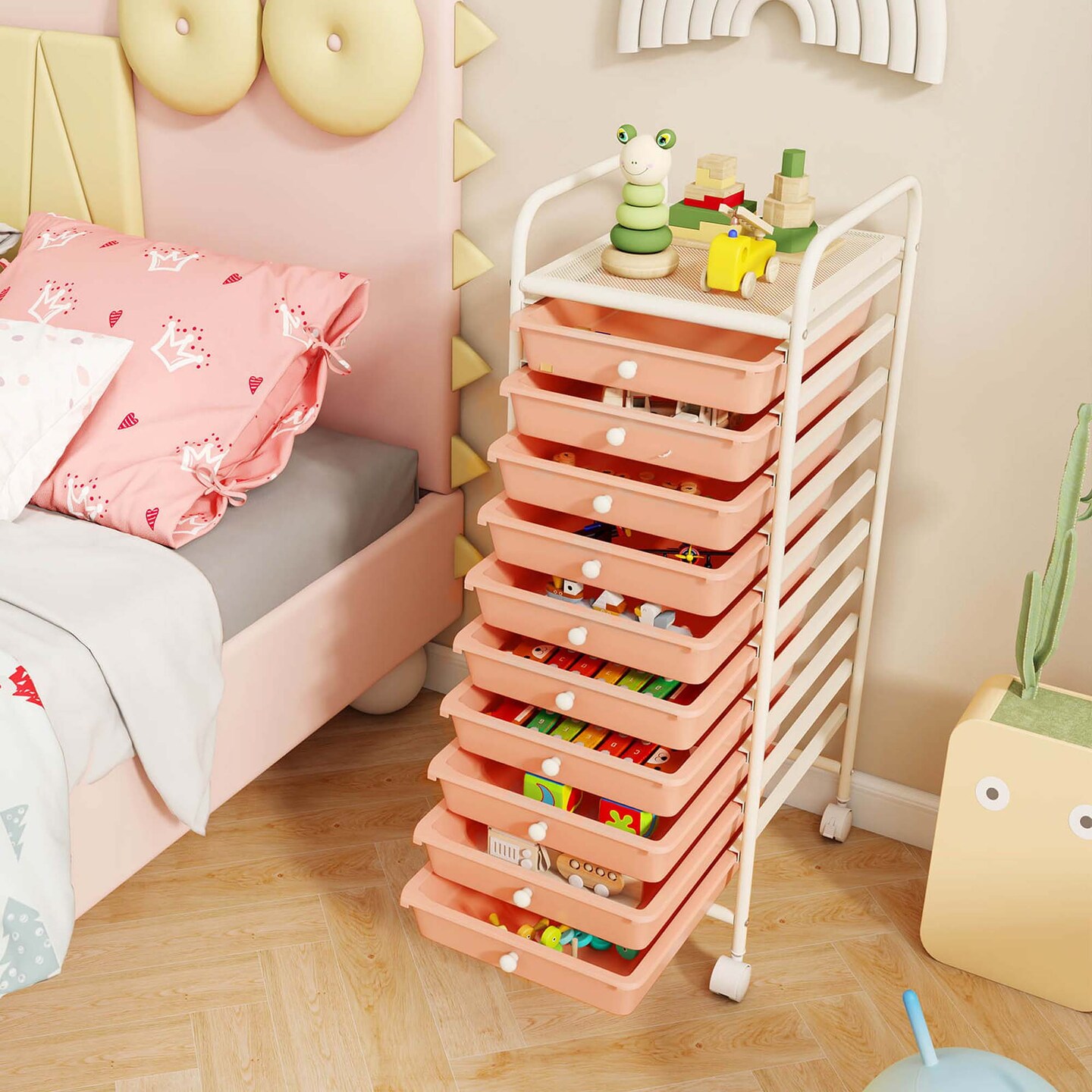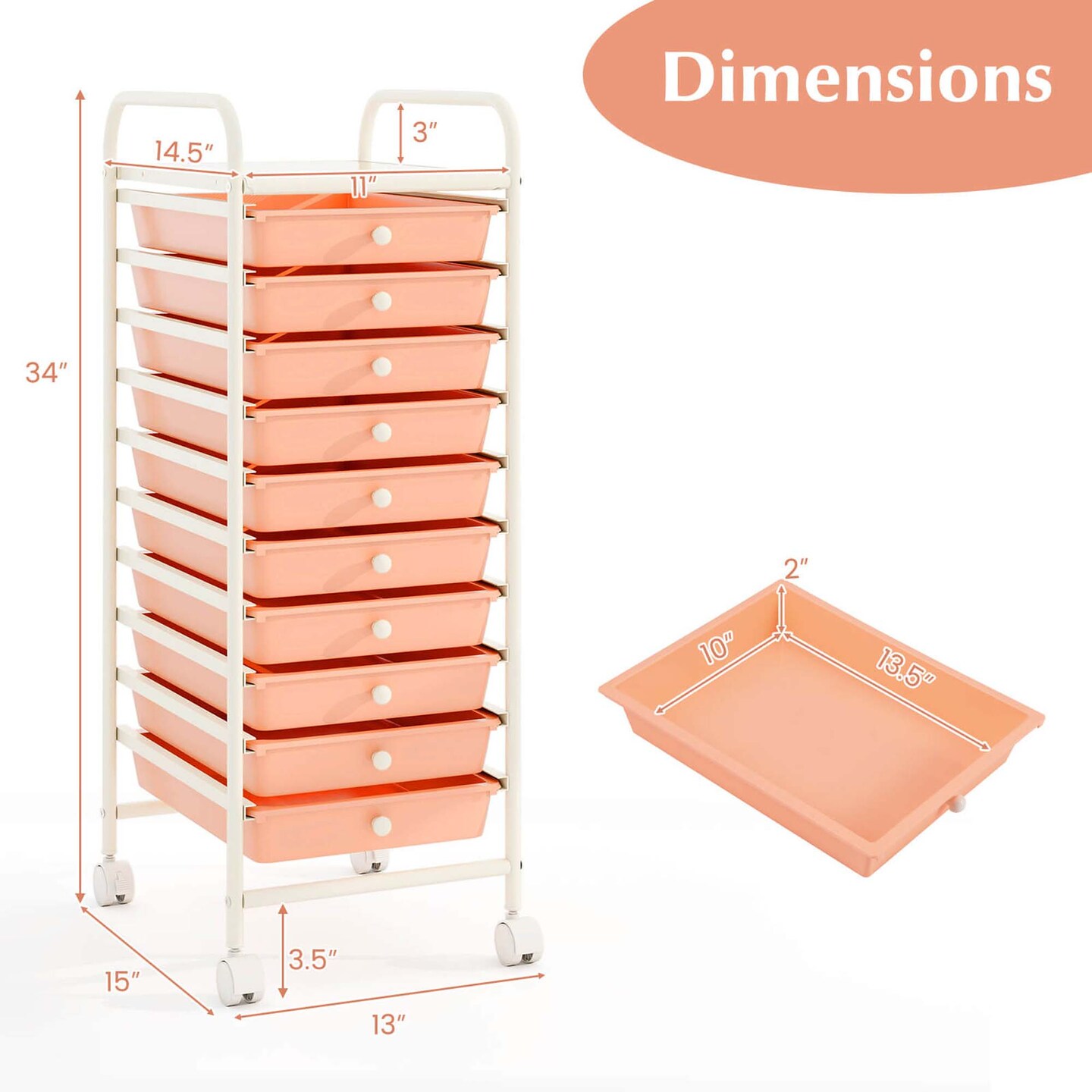 Costway 10 Drawer Rolling Storage Cart Scrapbook Paper Office School Organizer Gradient Black/Gradient Pink/Multicolor/Yellow/Colorful/Clear/Black/Hot Pink/Skin Pink/Purple