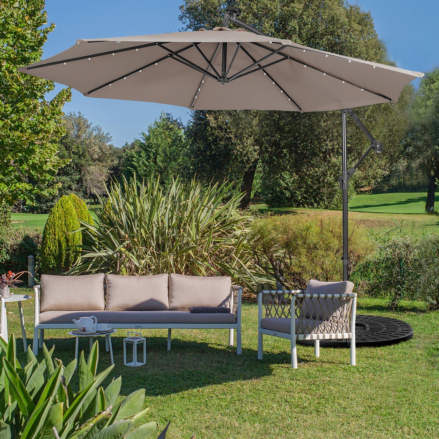 Costway 10FT Cantilever Solar Powered 32LED Lighted Patio Offset Umbrella Outdoor Red\Beige\Coffee\Blue\Navy