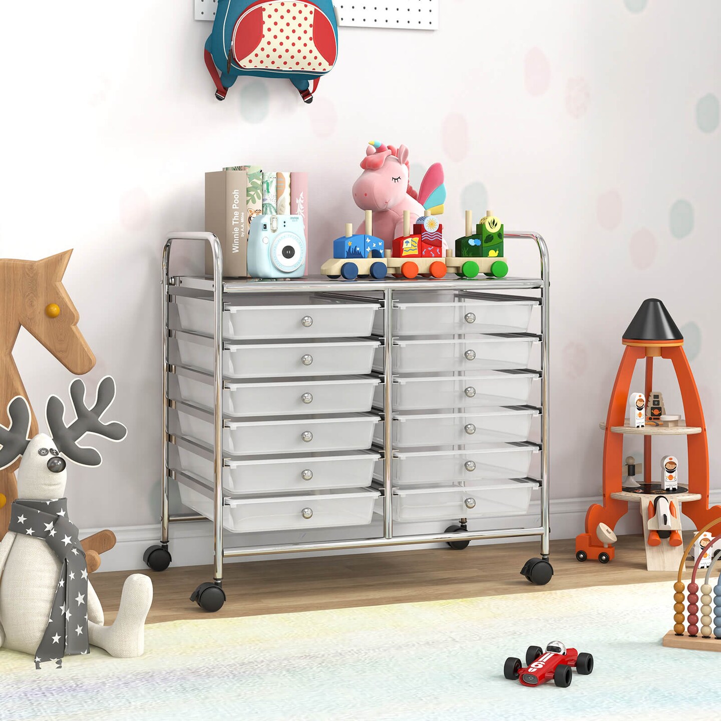 Costway 12 Drawers Rolling Cart Storage Scrapbook Paper Studio Organizer Bins Macaron/White/Light Pink/Purple/Pink/Clear/Gray/Rainbow/Multicolor/Hot Pink/Black